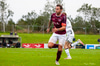 Boltinn inná teiginn og Gunnar kemur út og Gunnar missir boltann en er heppinn að enginn er mættur.