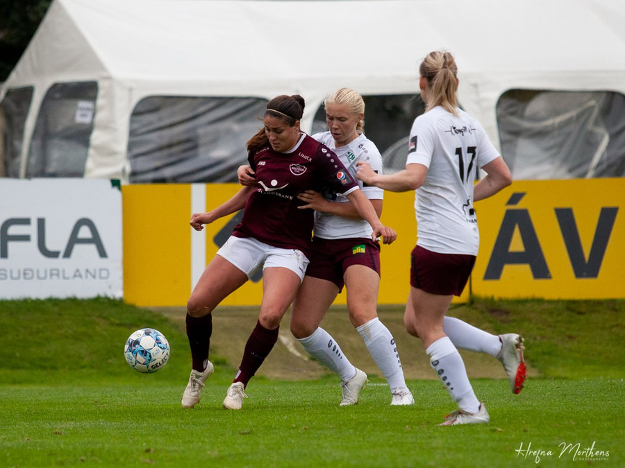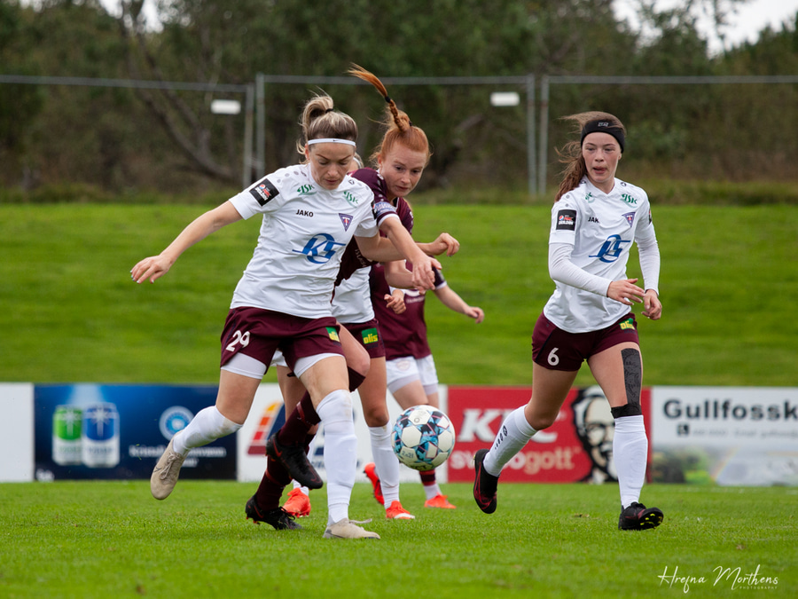 Jacqueline setur boltann á fjær en Áslaug skallar boltann í burtu en Tindastóll vinnur annað horn.