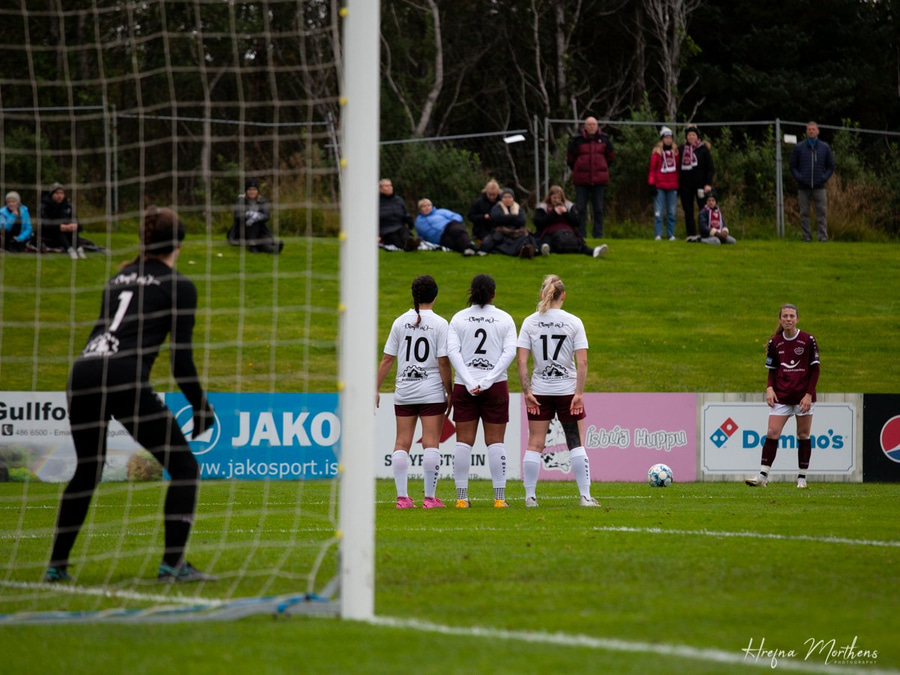 Laufey setur boltann á fjær en Emma skallar hann og eftir smá klafs endar boltinn úti hjá Nadeja en sem skítur en Haland grípur boltann.