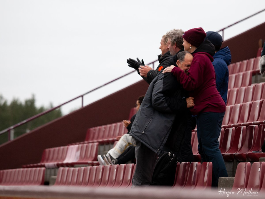 Caity með boltann á Amber sem kýlir hann í burtu og eftir smá skallatennis endar boltinn hjá Mögdu sem skallar rétt yfir.