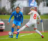 Ísland lætur að sér kveða hér strax í upphafi. Mikael með sendingu inn í teiginn sem Viðar nær ekki að gera sér mat úr. Áfram heldur sóknin og á endanum á Albert Guðmundsson marktilraun yfir markið.