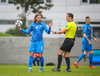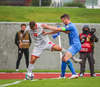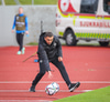 Brynjar Ingi hittir boltann herfilega og heppinn að skora ekki sjálfsmark. Boltinn fór sem betur fer framhjá.