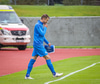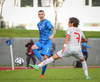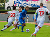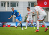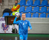 Makedónía kemst í hættulega sókn en em betur fer er sending Churlinov ekki góð.
