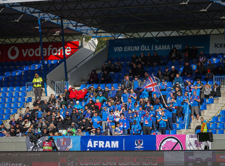 Leikurinn er farinn af stað - Tólfan ekki með neitt þagnabindindi núna. Stuðningur frá fyrstu mínútu.