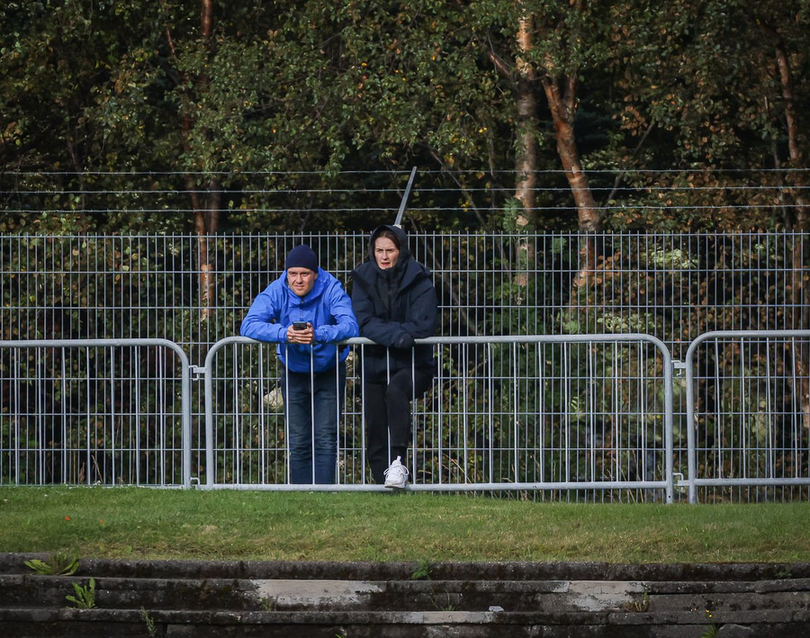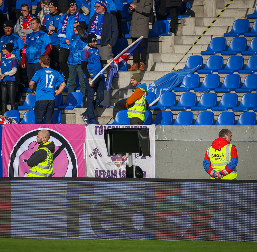 Þrátt fyrir að það séu heldur færri á vellinum en í venjulegu árferði þá er ágætis gír á þeim sem eru mættir. Stúkurnar að kallast á og víkingaklappið var tekið áðan.