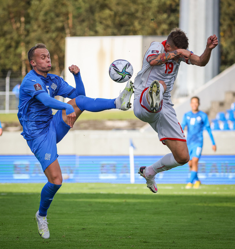 Birkir Már með fyrirgjöf frá hægri en boltinn í Alioski og afturfyrir. Ísland fær horn.