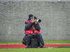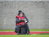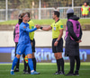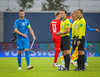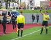 Þjálfari Makedóníu fær gult spjald fyrir kjaft.