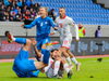 Ísland vill fá víti en ekkert dæmt! Andri Lucas féll í teignum.