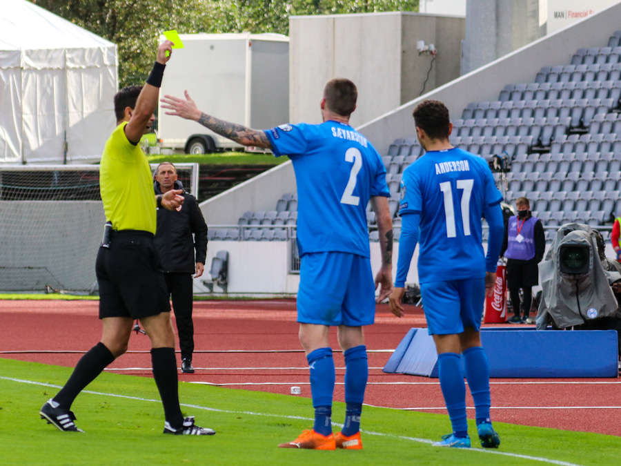 Gult spjald: Birkir Már Sævarsson (Ísland)