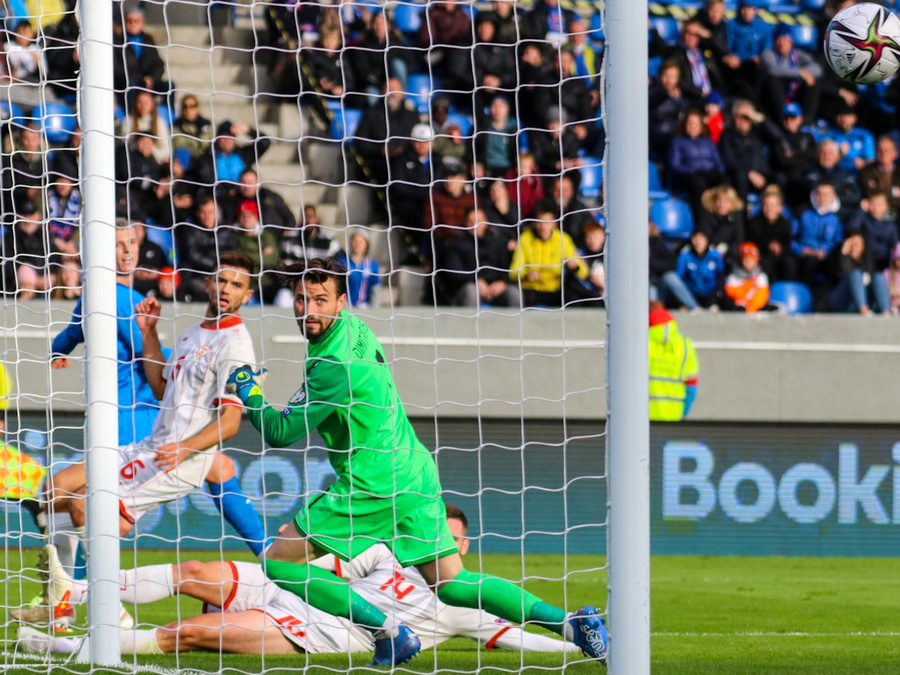 Albert Guðmundsson með skot úr aukaspyrnu sem markvörðurinn ver en heldur ekki boltanum, Brynjar Ingi hirðir frákastið og skorar.