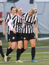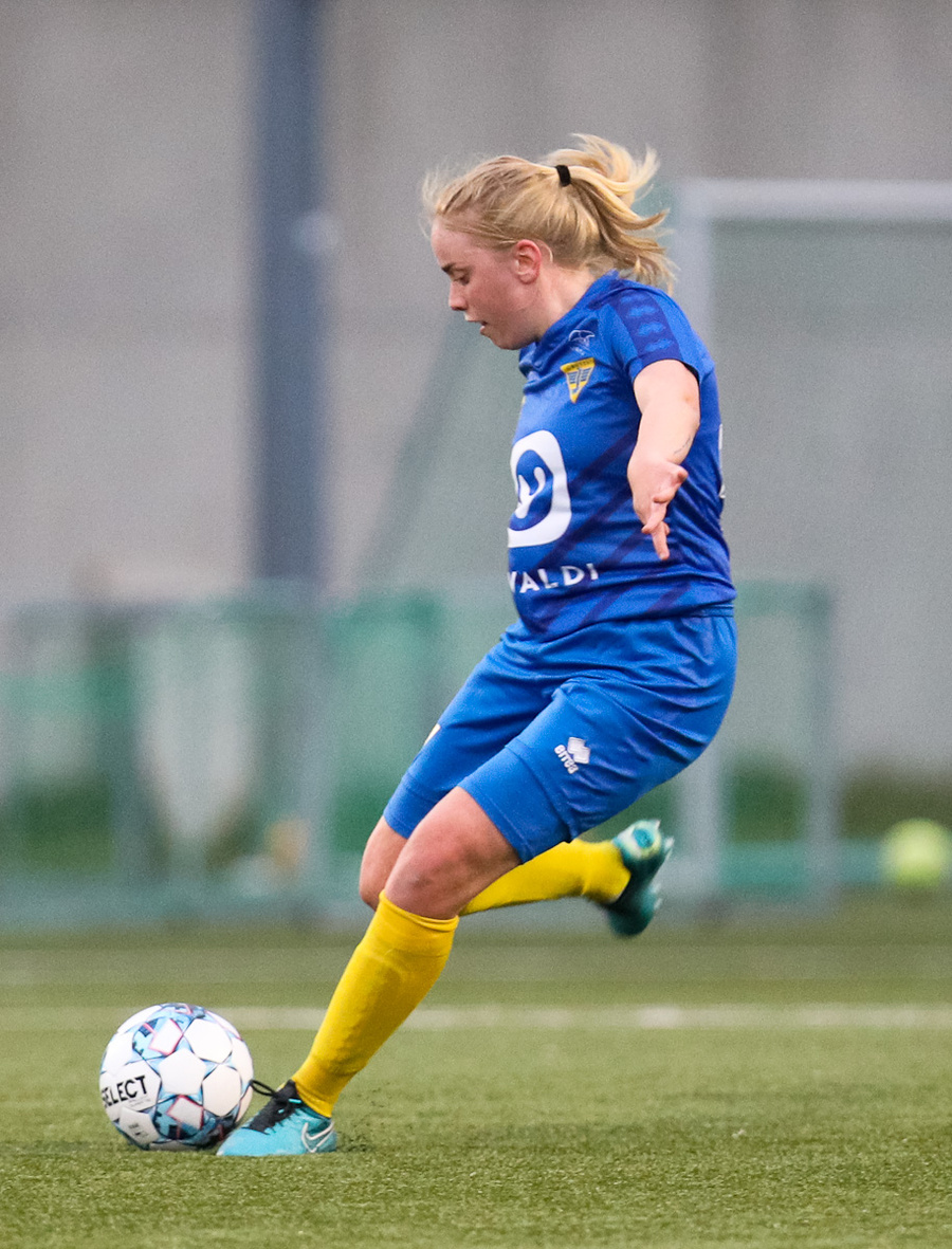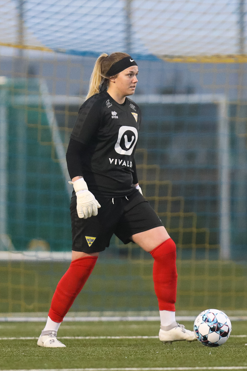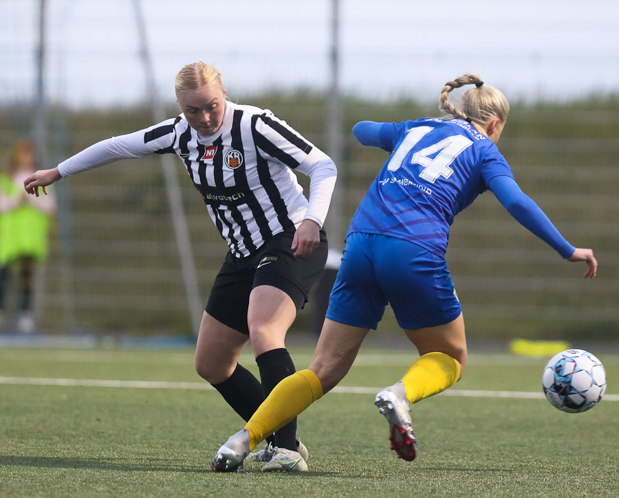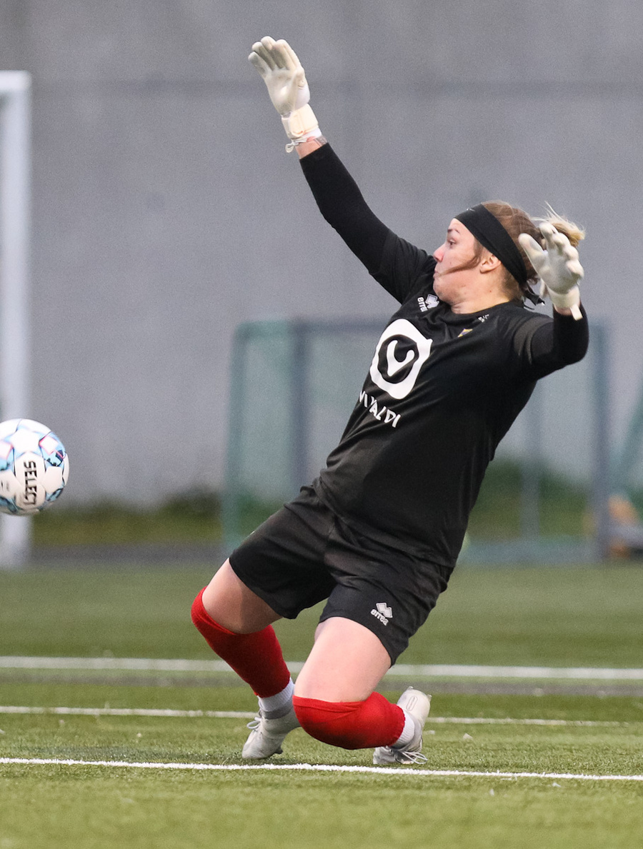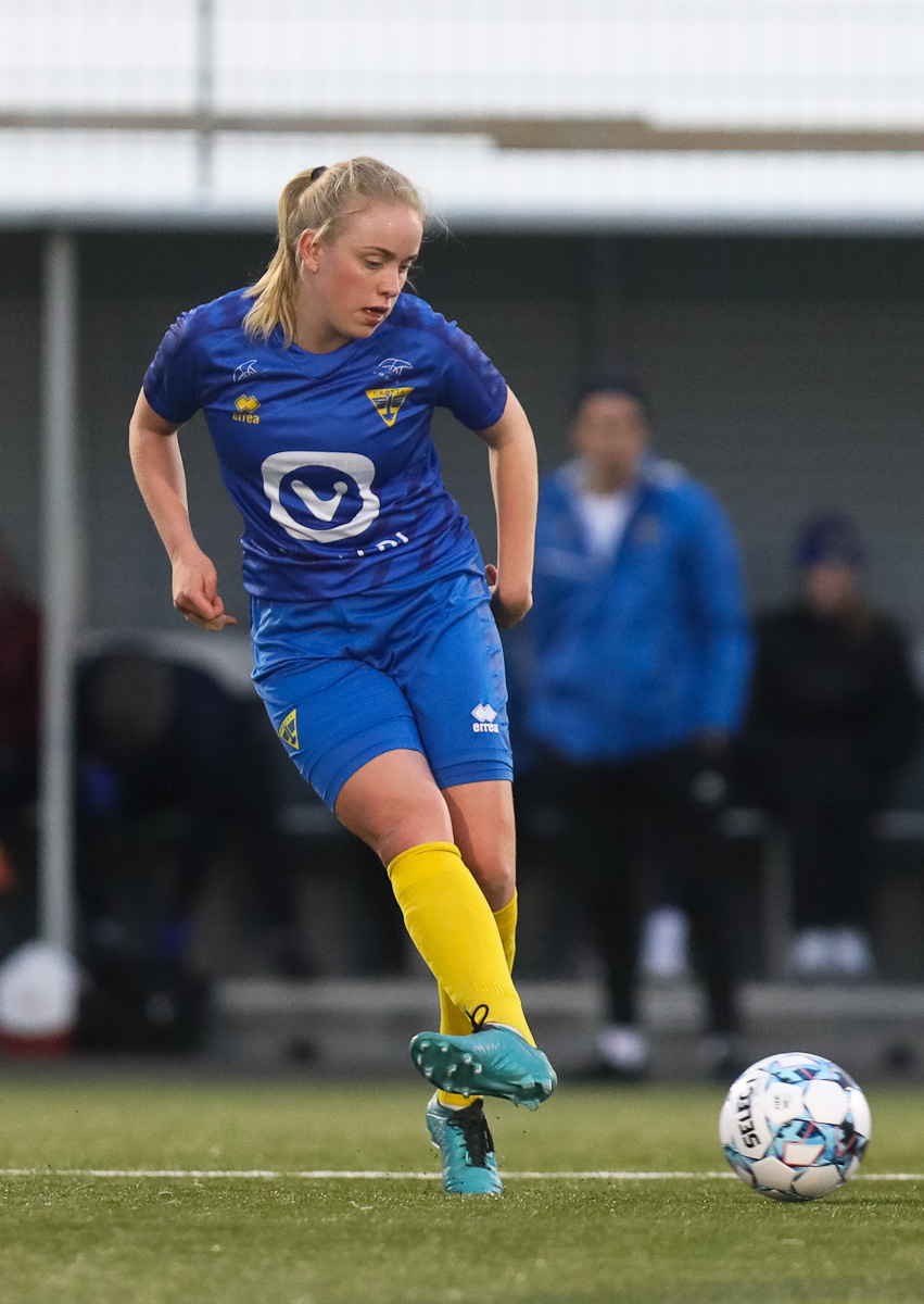 Aideen kemur með góðan bolta inn á miðjunna á Arden sem ætlar að senda hann lengra upp á Unni en boltinn endar hjá Maggie í markinu.