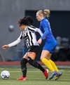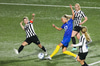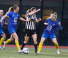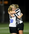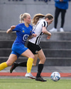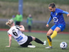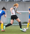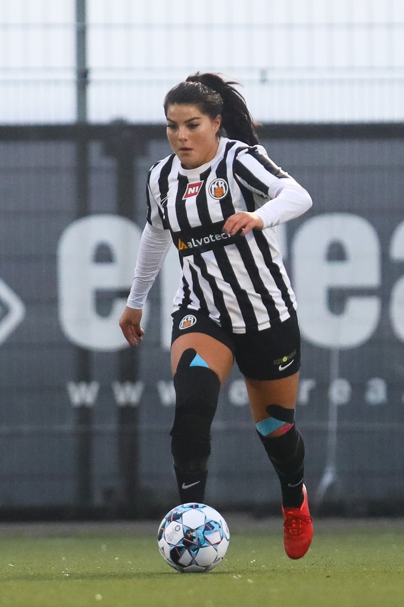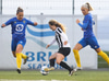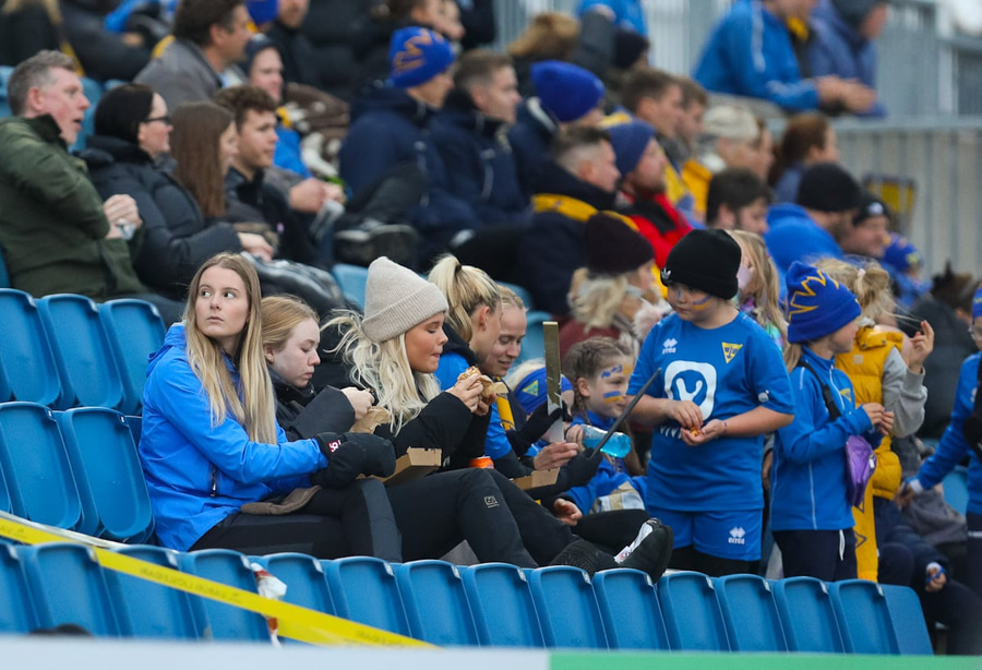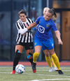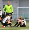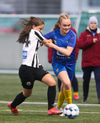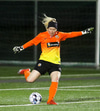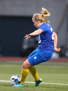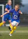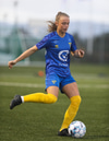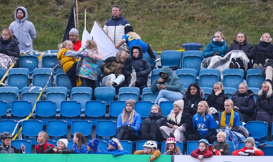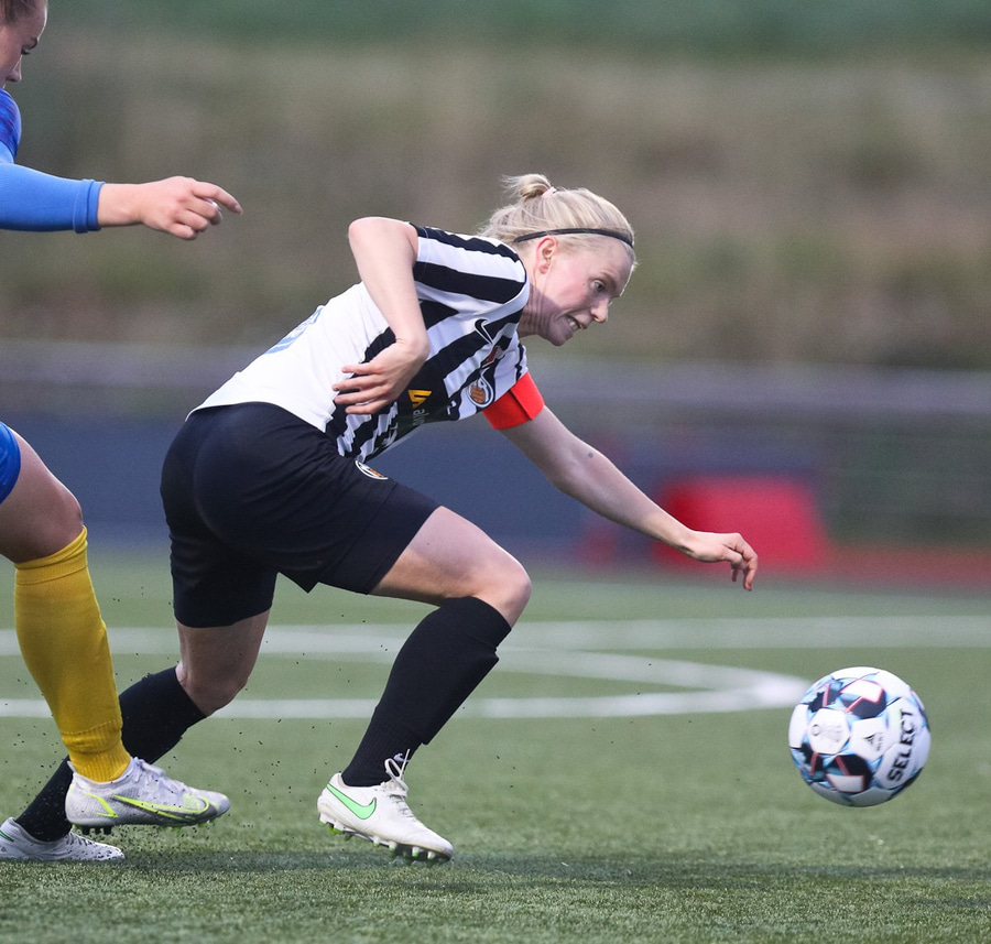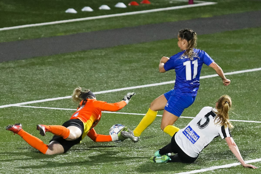 Aideen kemur upp á fleygiferð inn í teyginn en Emma mæti henni og kemur boltanum í innkast.