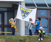 Diljá tekur spyrnuna og setur inn á teiginn, Eydís Lilja hársbreidd frá þvi að komast í hann.