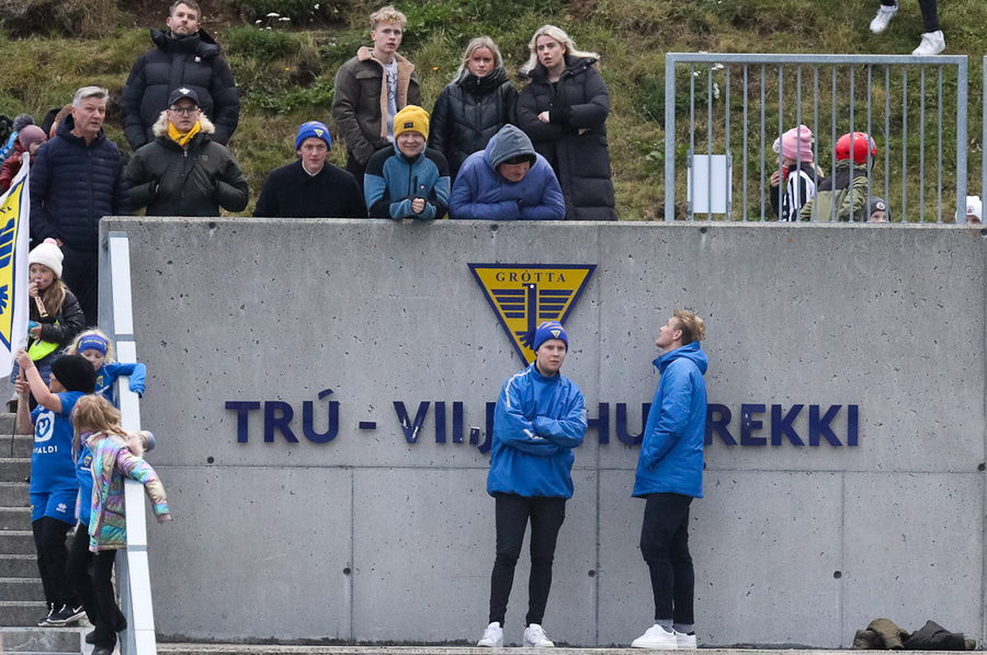 Spennan er ekki minni á botninum þar sem fyrir leiki kvöldsins eiga 5 lið, Grindavík, HK, Grótta, Augnablik og ÍA, tölfræðilega möguleika á að falla úr deildinni. Því þarf Grótta að treysta á hagstæð úrslit í öðrum leikjum kvöldsins nái þær ekki að landa sigri.