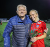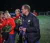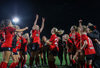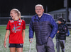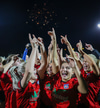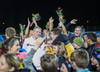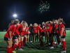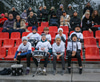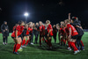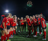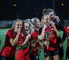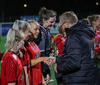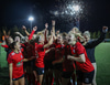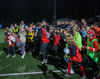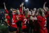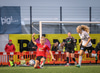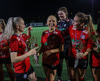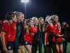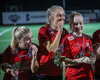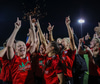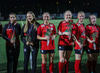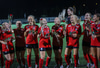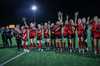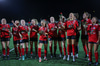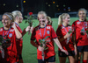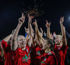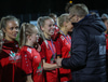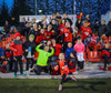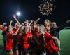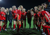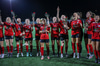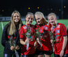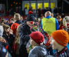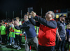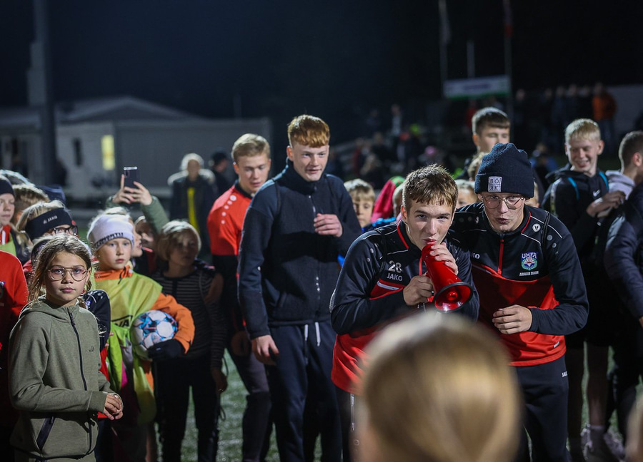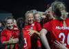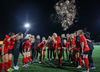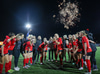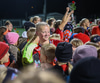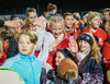 Liðin ganga út á völl við mikinn fögnuð áhorfenda!