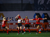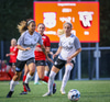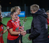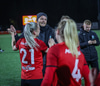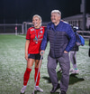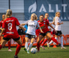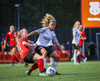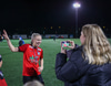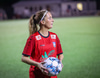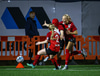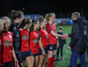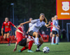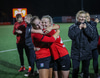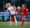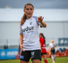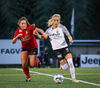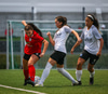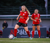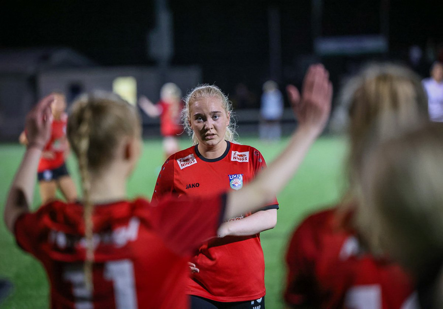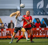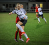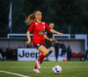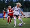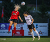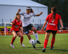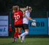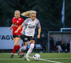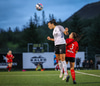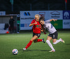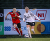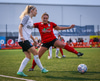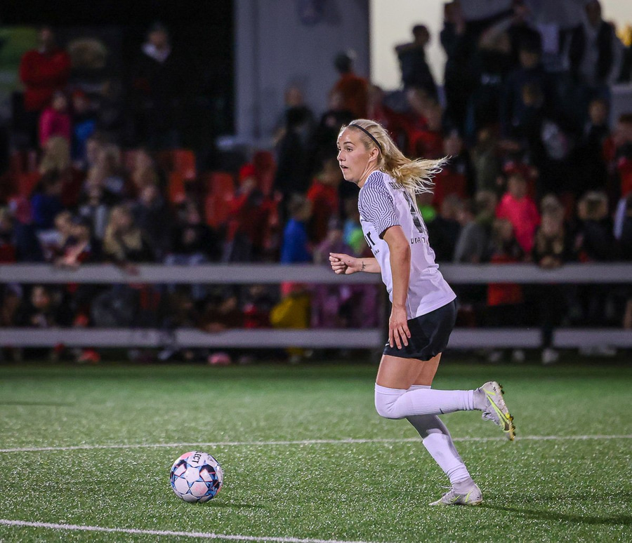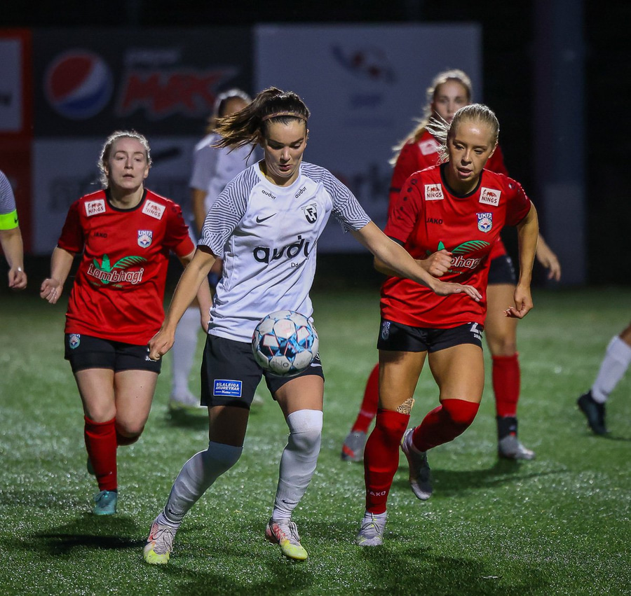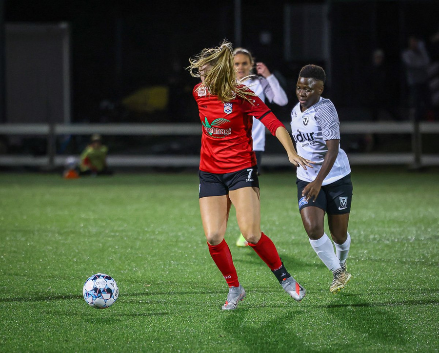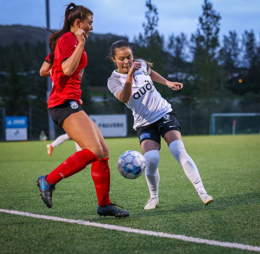 Ragna Guðrún sendir Jade í gegn, Jade reynir að setja hann fyrir markið í fyrsta en sendingin er of framarlega fyrir Guðrúnu Elísabetu.
