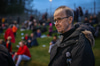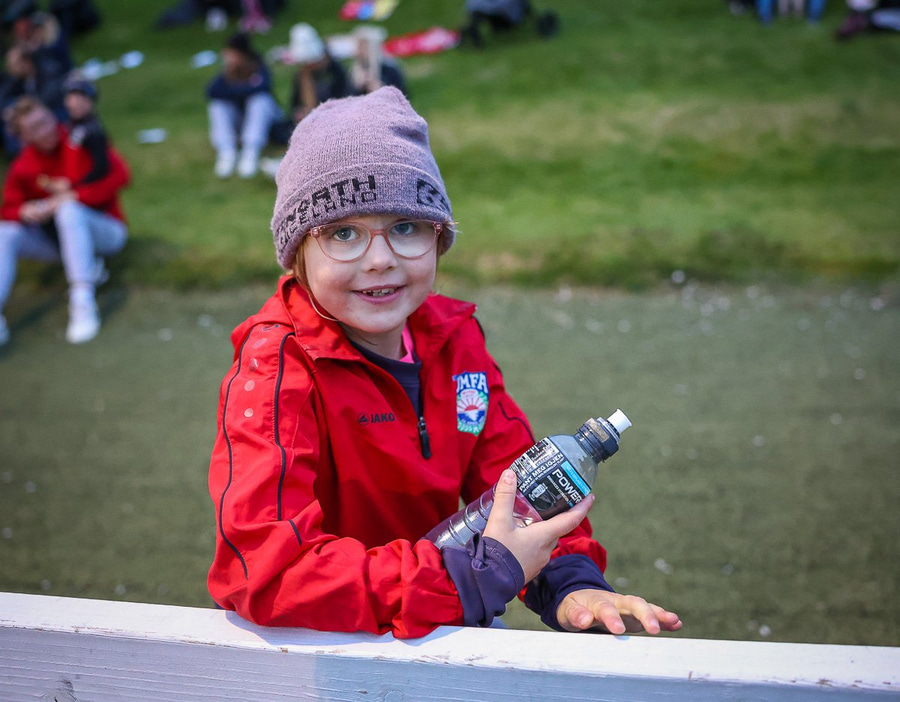 Völlurinn er orðinn fullur! Fólk stendur hér út um allt og það er að fyllast auka hólf bakvið mark Aftureldingar!