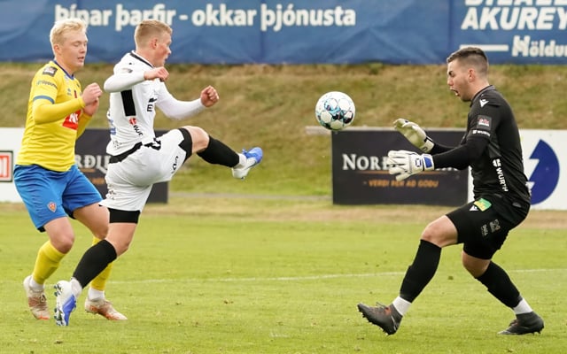 Erfið fæðing hjá KA mönnum sem að komu loks inn marki á 88. mínútu. Það var kunnuglegt andlit sem að dró þá yfir línuna. Hallgrímur Mar sýndi að hann getur unnið leiki uppá sitt einsdæmi og það var síðan Dalvíkingurinn Nökkvi sem að kláraði dæmið fyrir heimamenn.