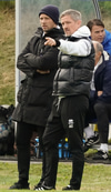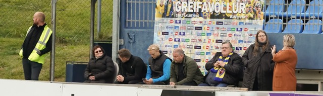 Völlurinn blautur og blankalogn. Verður fróðlegt að sjá hvernig Greifavöllurinn kemur undan þessari baráttu.