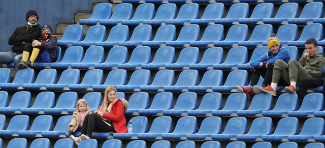 Stutt í hálfleiksflautið og enn markalaust. Fátt sem bendir til að það breytist. Eftir fjörugar fyrstu 30 mínútur er leikurinn orðinn meira miðjumoð og barátta.