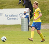 Aron ver vel frá Hallgrími! Hallgrímur kemst í gott skotfæri á hægri löppina þegar hann klippir inn af vinstri kantinum, en Aron er vandanum vaxinn í markinu og ver í horn.