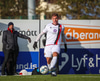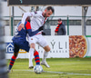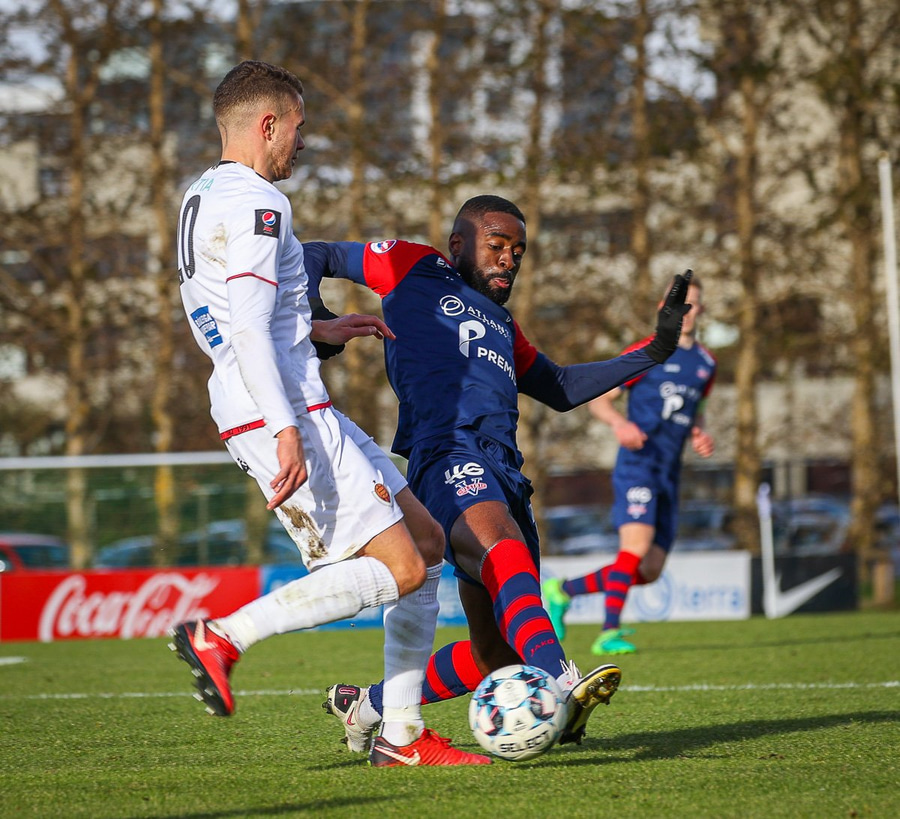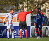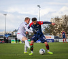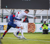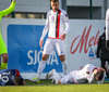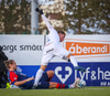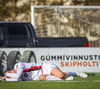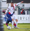 Oafo-Badu fer í svaka tæklingu á Nicolaj sem dómarinn dæmir löglega en hann liggur í grasinu og þarf aðhlynningu.
