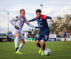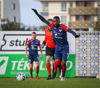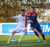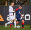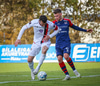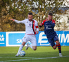 Dómarinn stöðvar leikinn og er fljótur að kalla inn sjúkrateymið eftir að Sölvi og Nacho skalla saman í teginum.