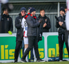 Arnar gerir tvöfalda skiptingu, greinilega ekki sáttur.