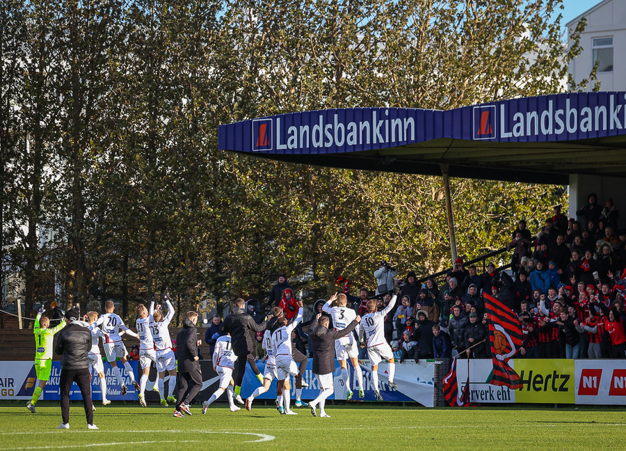 Aðstæður: 7° Hvasst en hiti í stuðningsmönnum