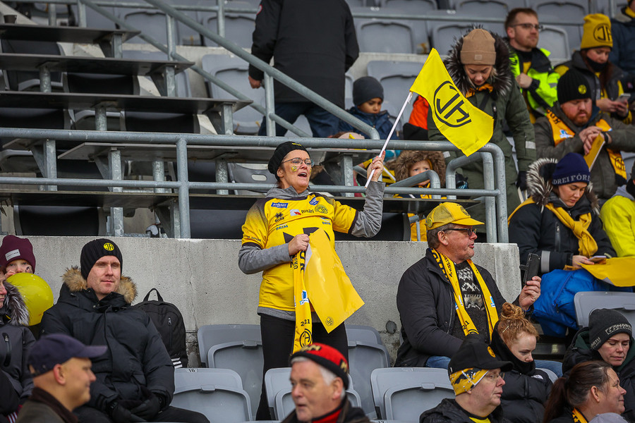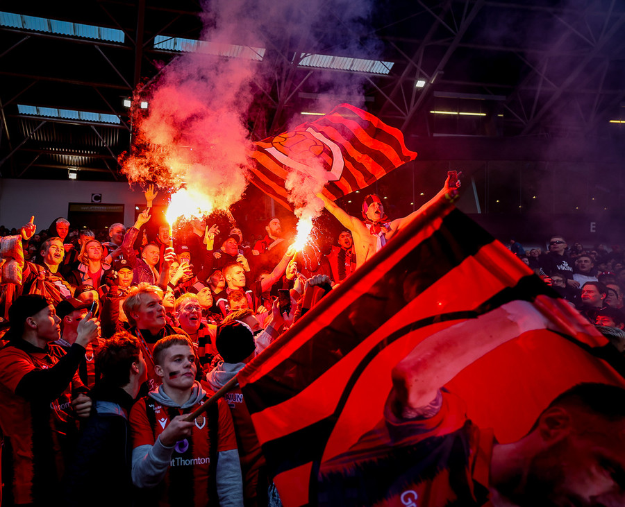 Það verður nú bara að segjast að stemningin í stúkunni er rafmögnuð og stuðningsmenn beggja liða auðvitað búnir að fjölmenna í stúkunna, frábært að sjá!