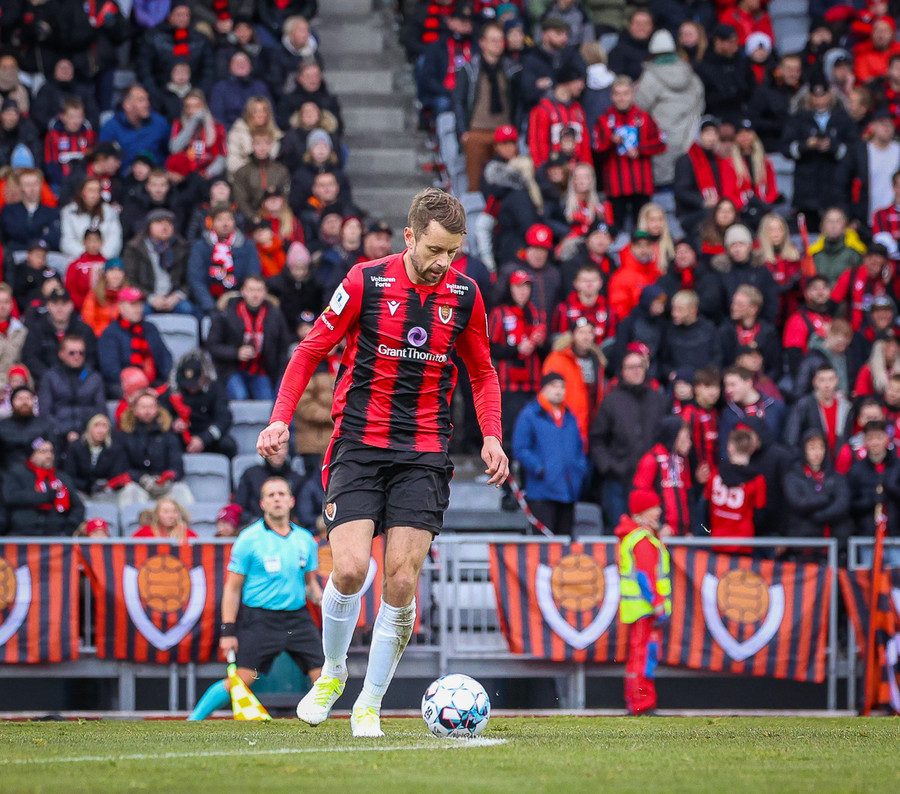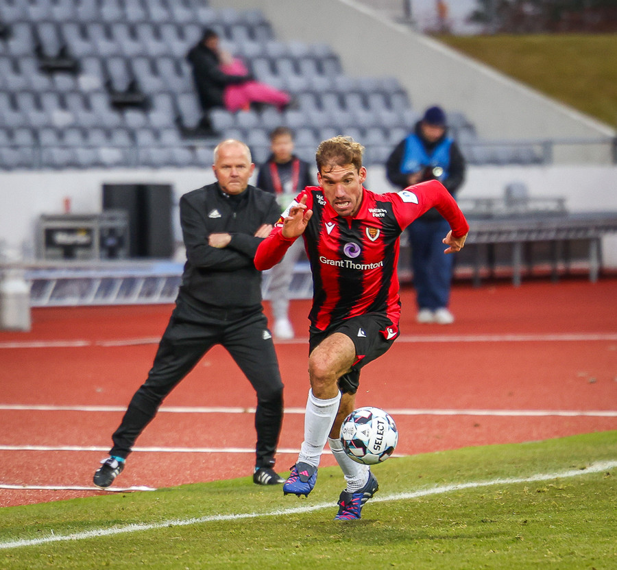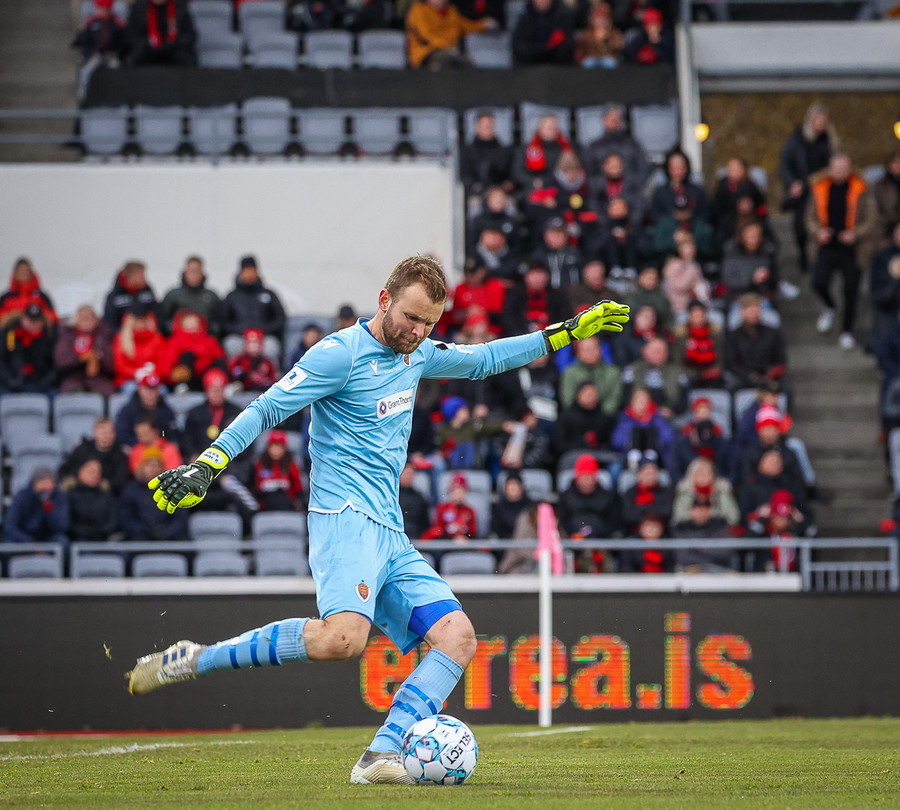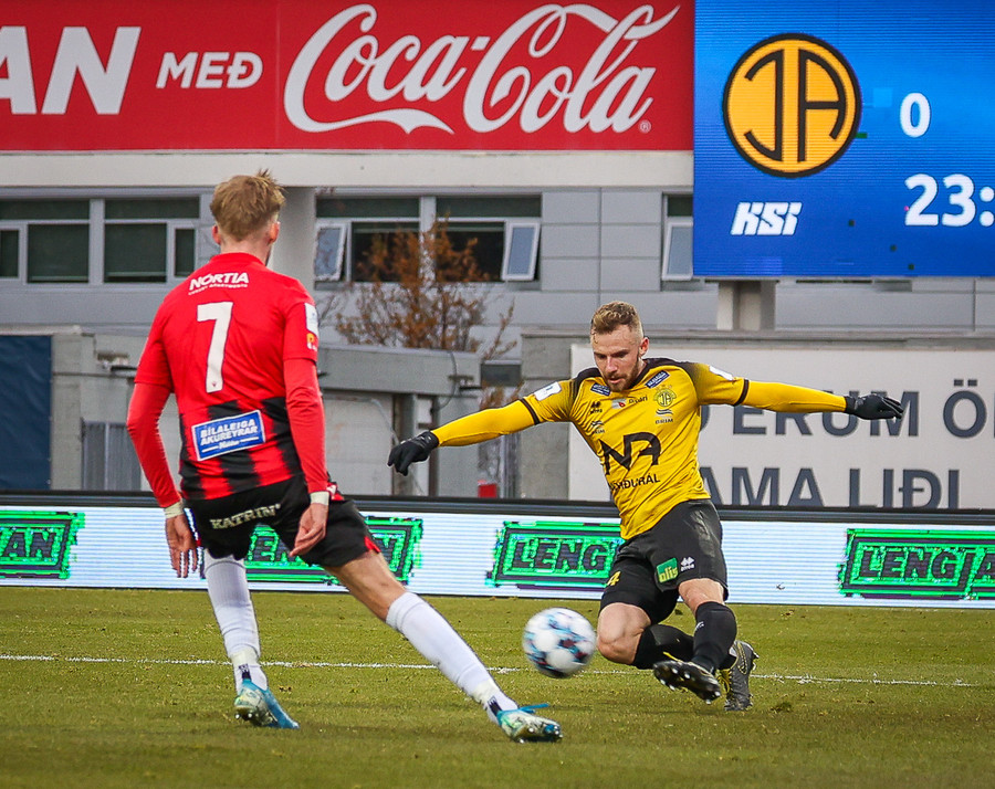 Atli Barkarson með aukaspyrnu fyrir utan teig og spyrnan er geggjuð yfir vegginn en syngur í hliðarnetinu!!