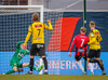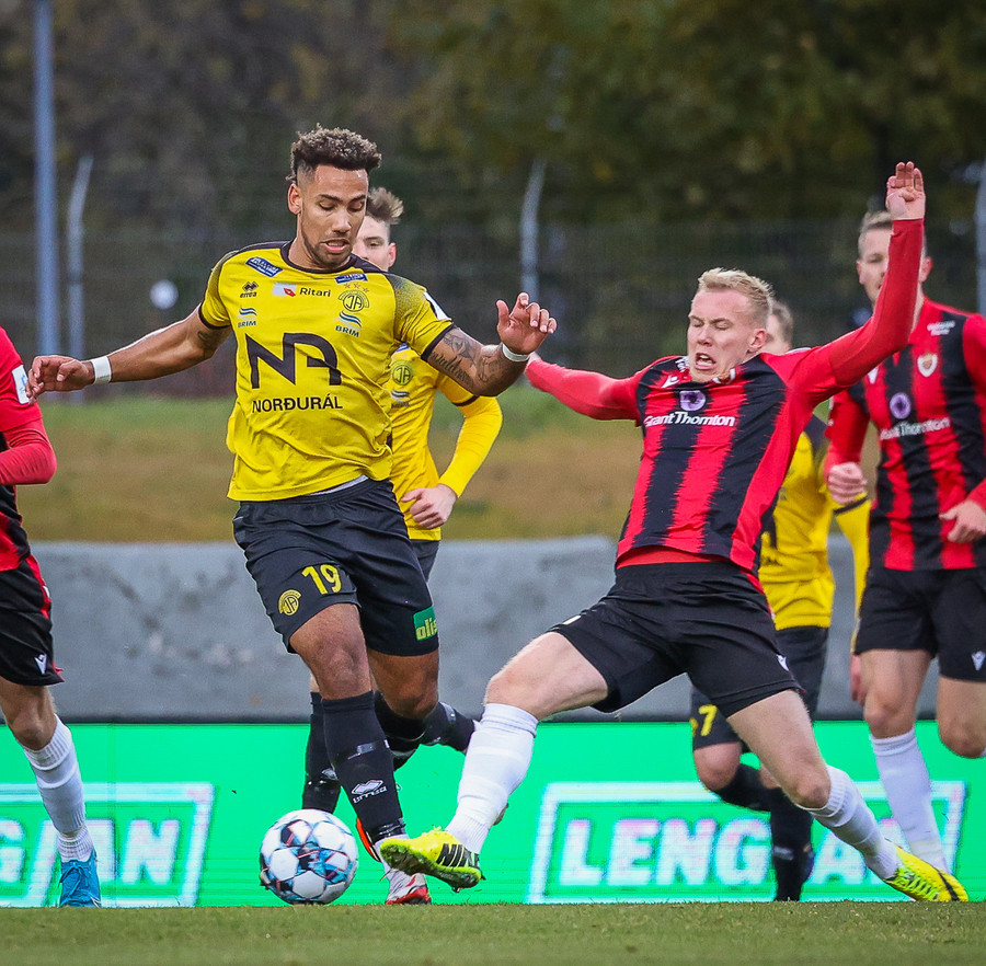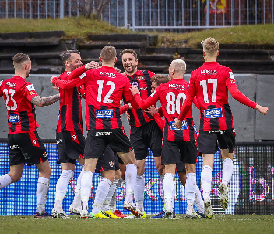 Boltinn kemur upp hægri kantinn á Viktor Jónsson sem á frábæra sendingu á fjær þar sem Gísli Laxdal mætir og skallar boltann í jörðina og framhjá