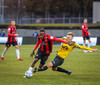 Kwame fær boltann á vinstri kantinum og keyrir inn á völlinn og reynir skot í nærhornið sem endar í stönginni!!