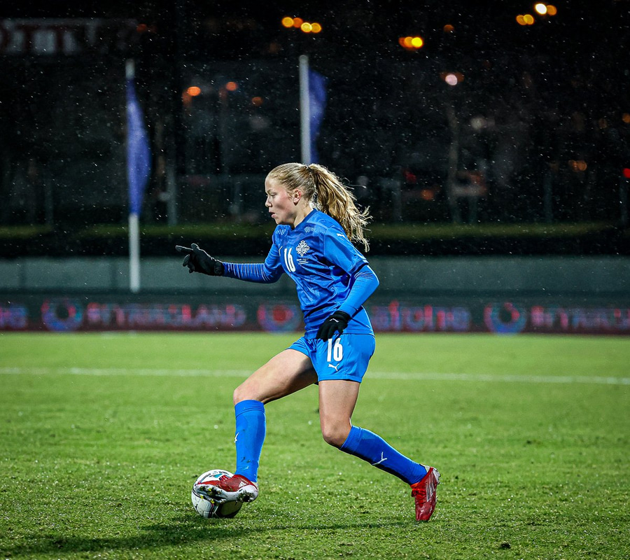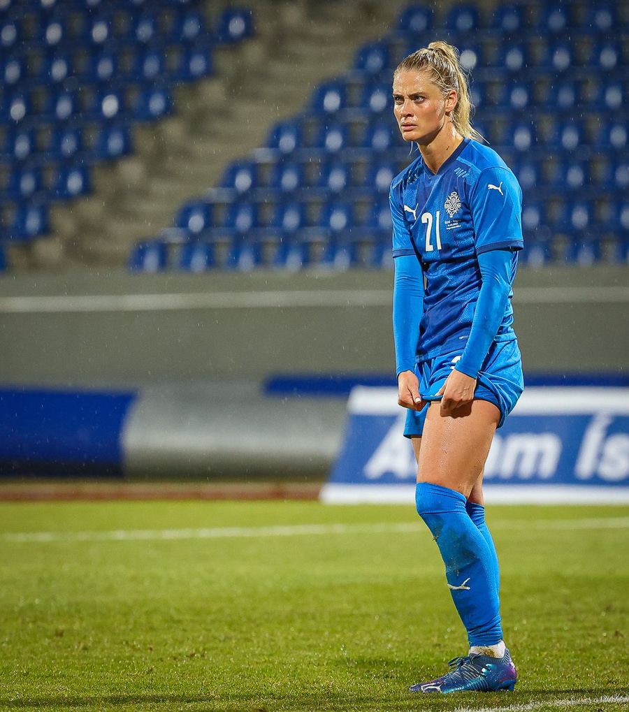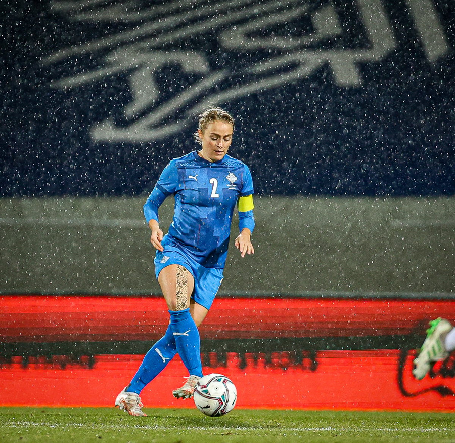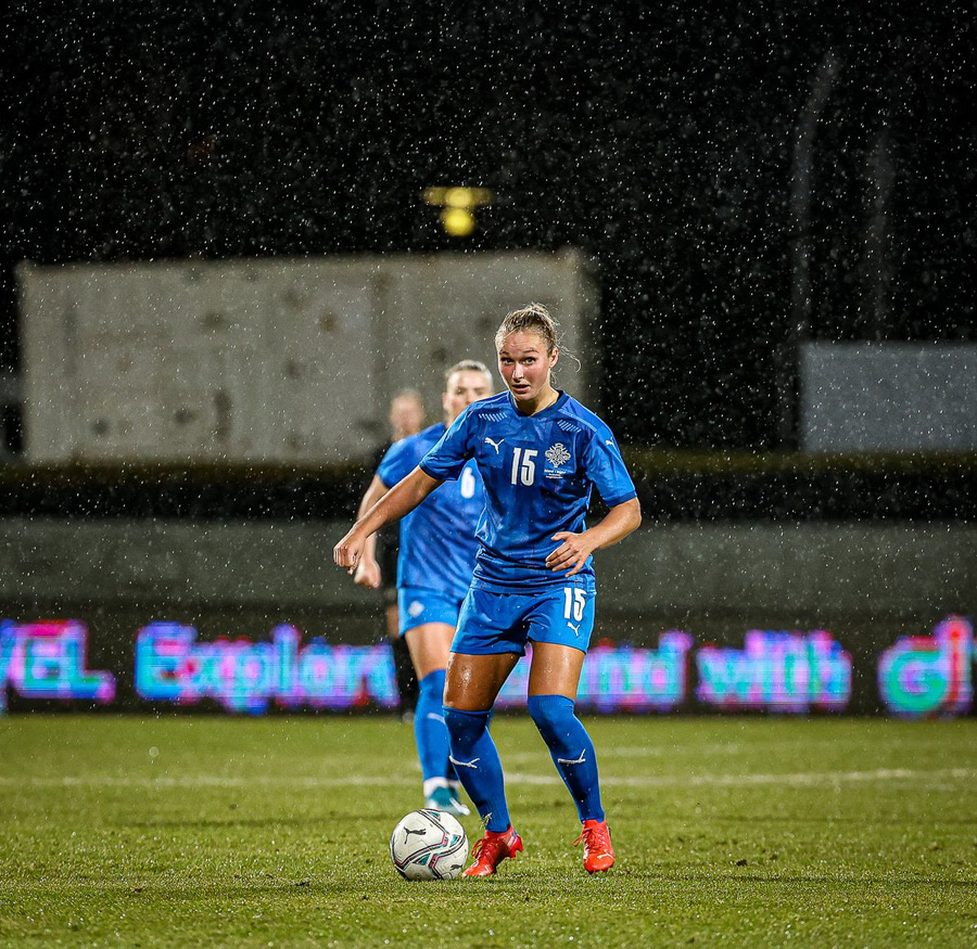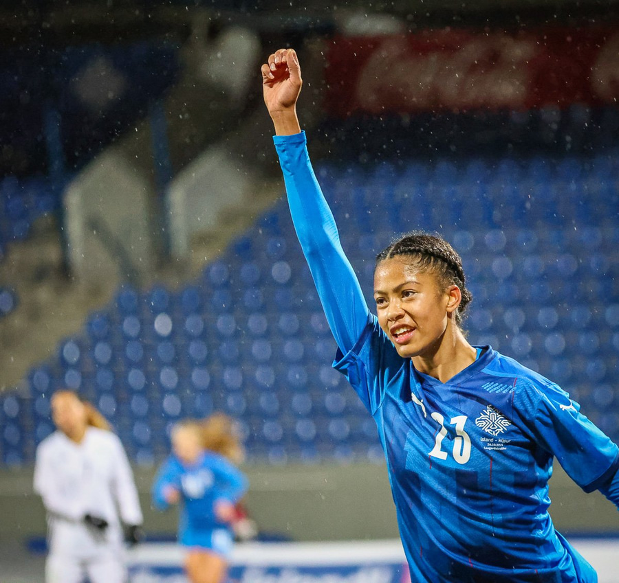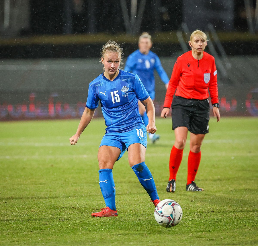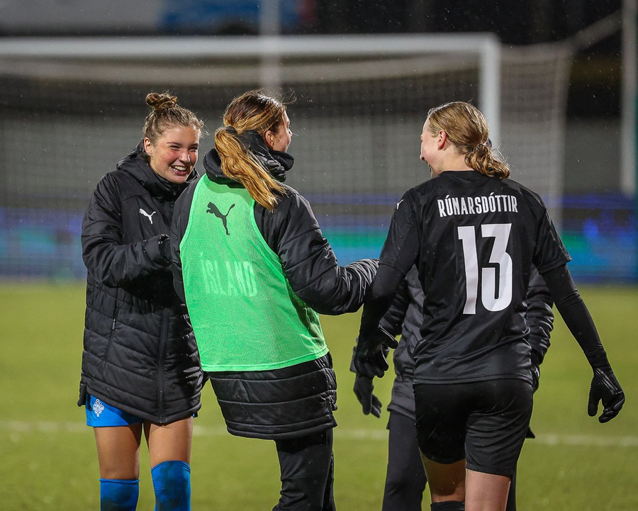 Hin 17 ára gamla Amanda Andradóttir spilar sinn annan A-landsleik. Hún er að byrja í fyrsta sinn fyrir Ísland.