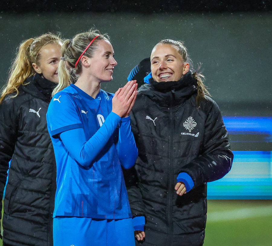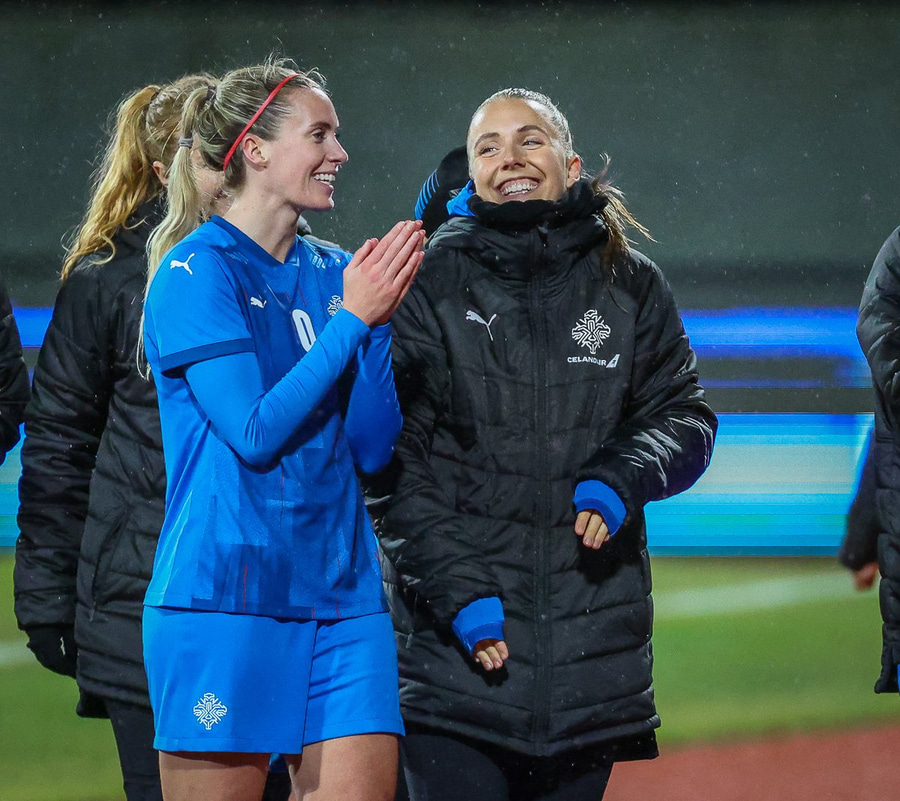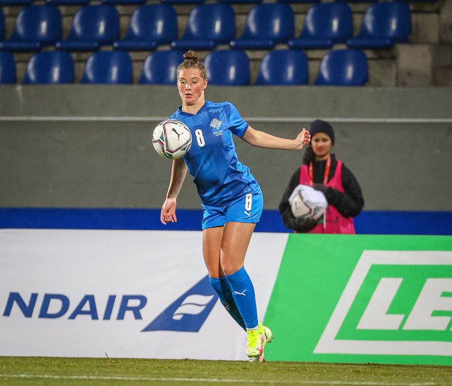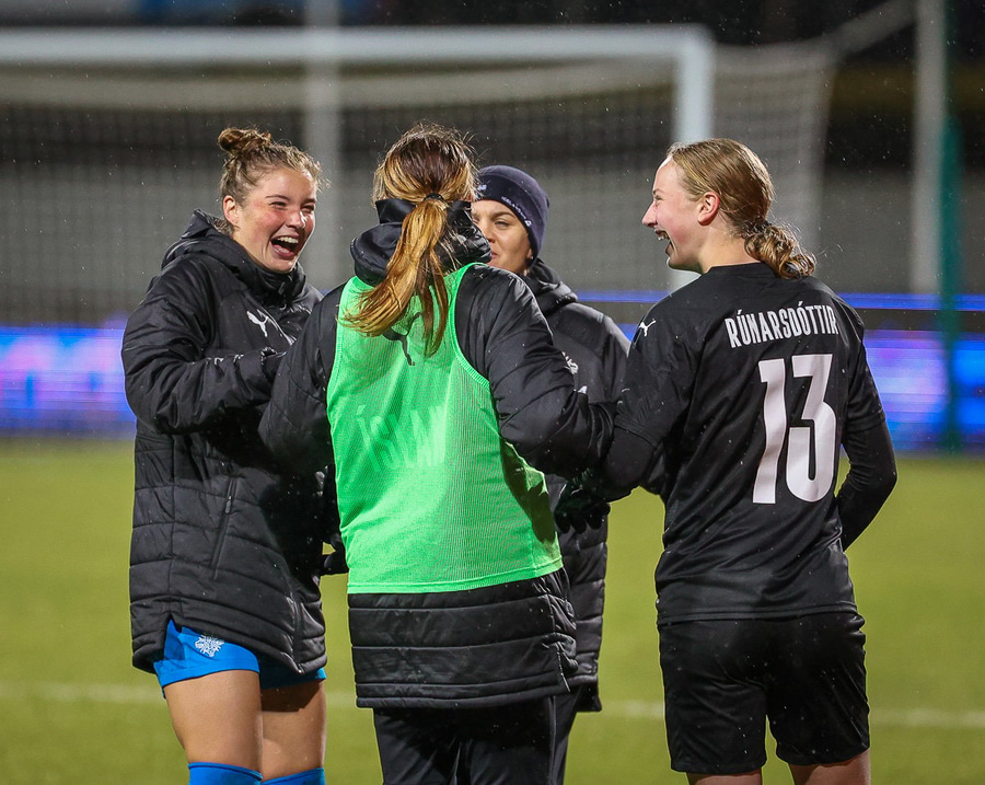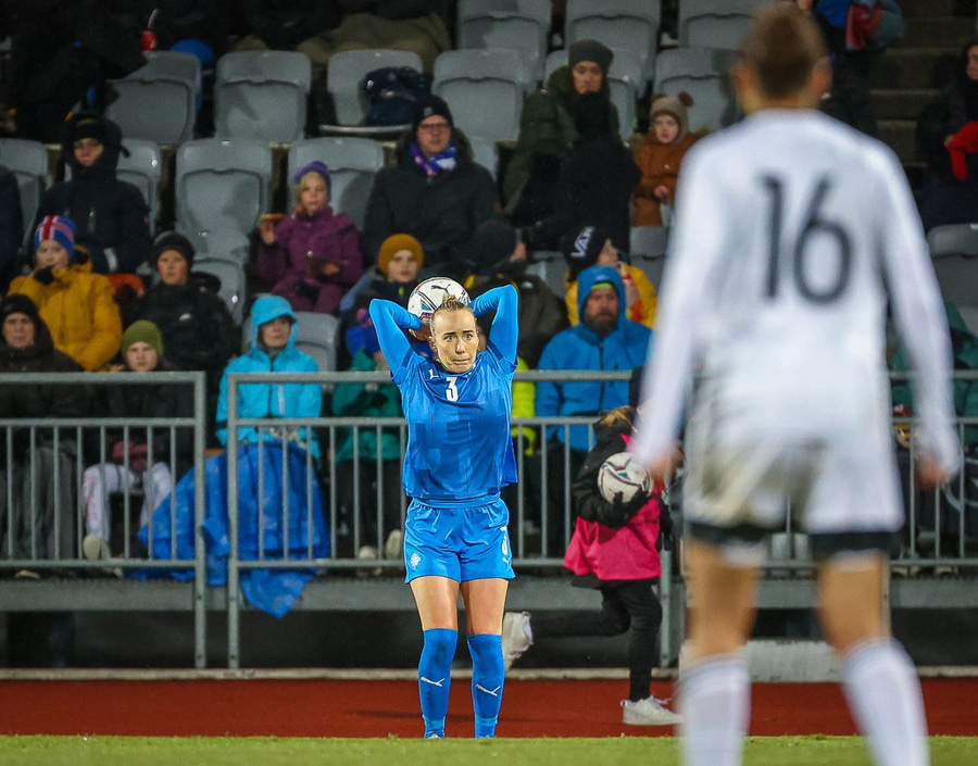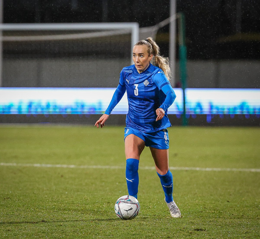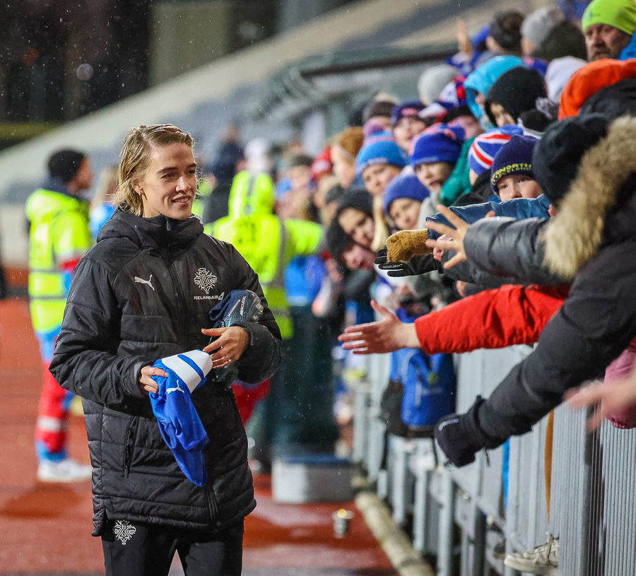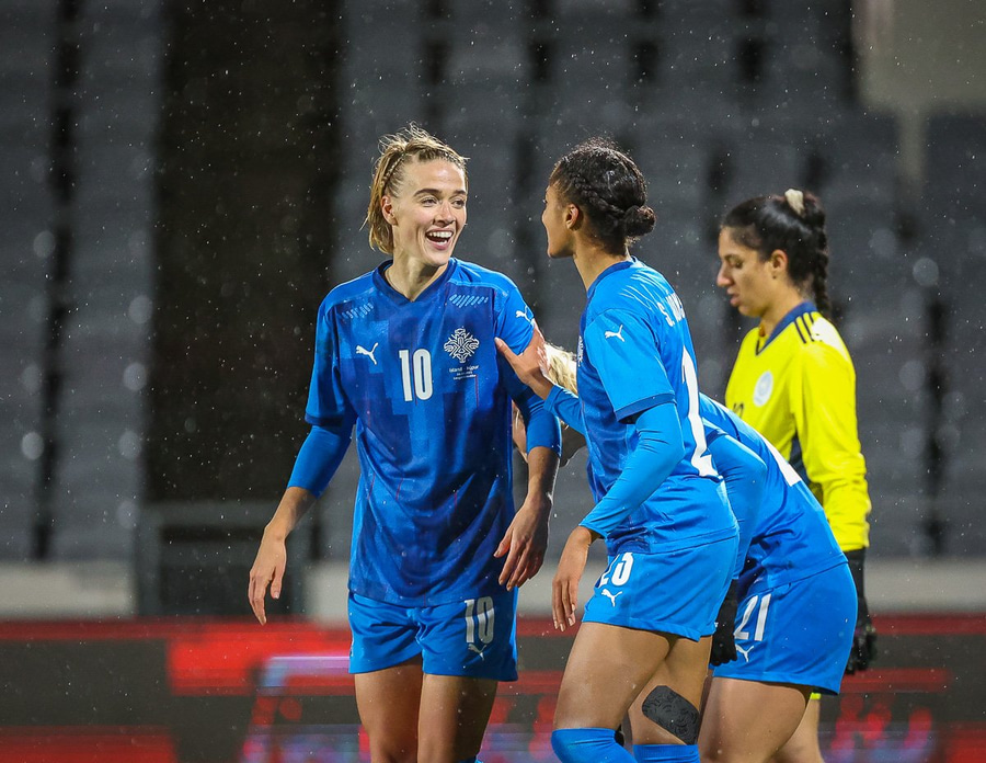 Hin 17 ára gamla Amanda Andradóttir spilar sinn annan A-landsleik. Hún er að byrja í fyrsta sinn fyrir Ísland.