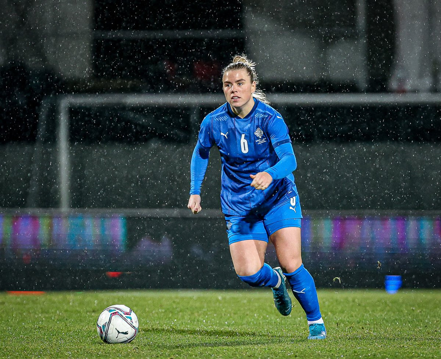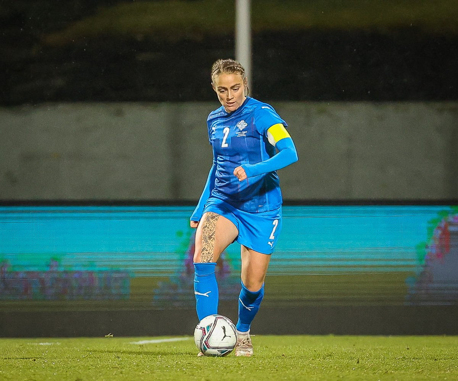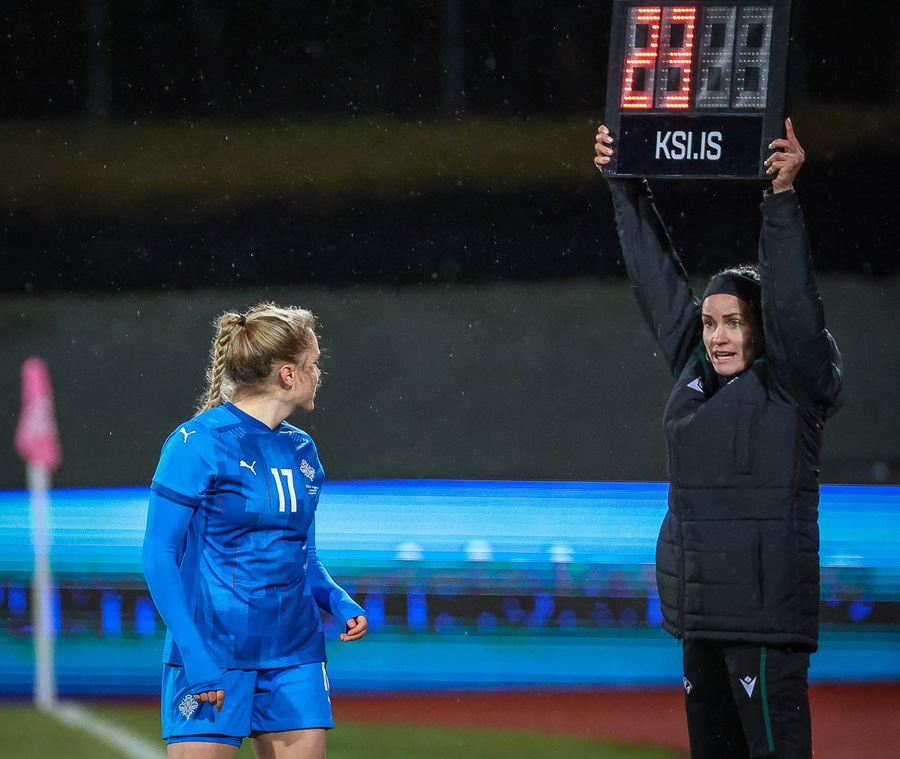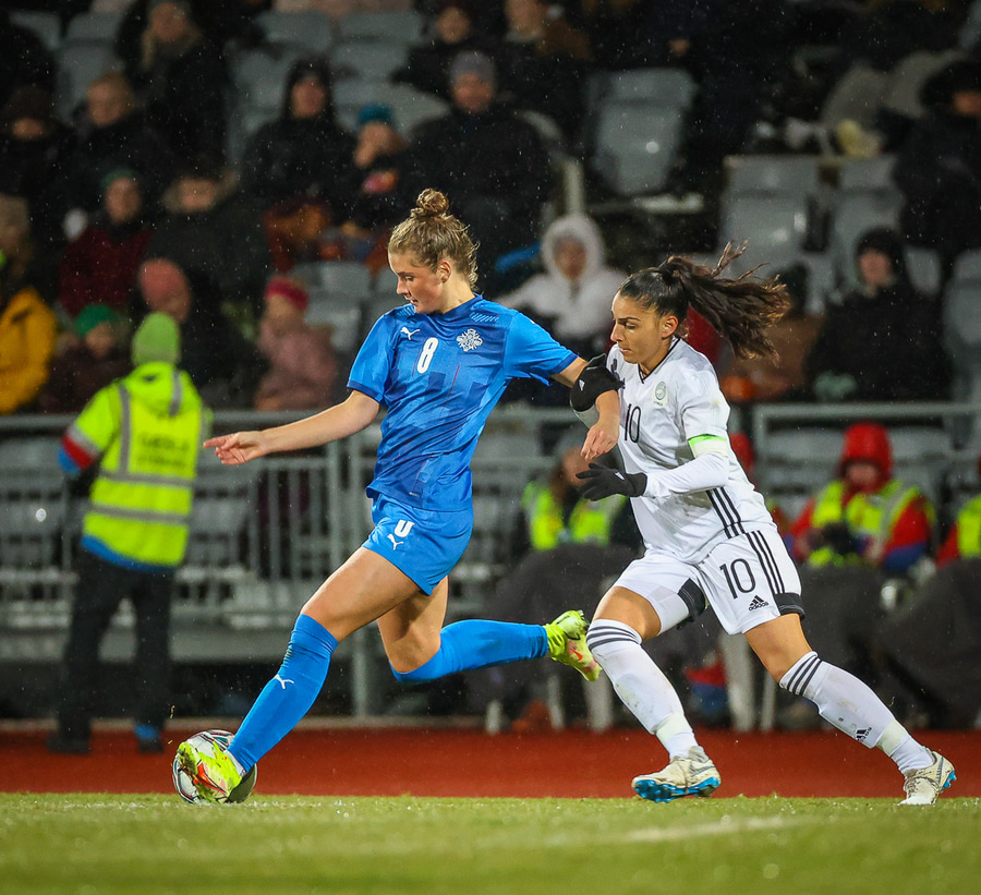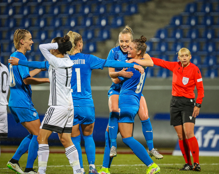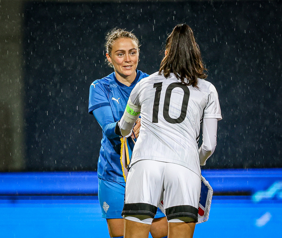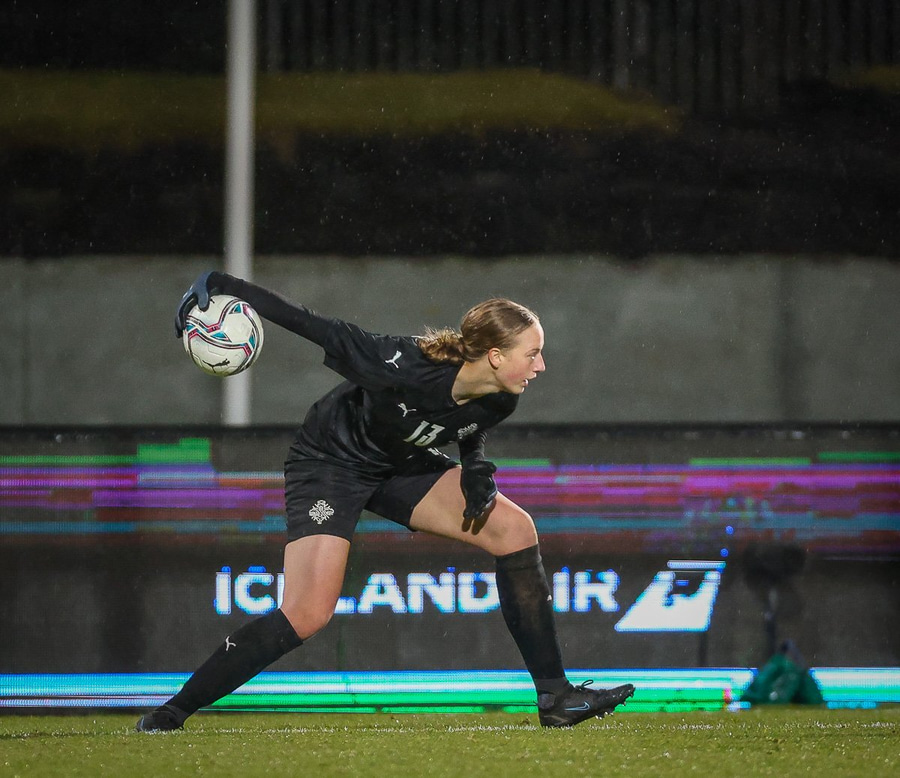 Hin 17 ára gamla Amanda Andradóttir spilar sinn annan A-landsleik. Hún er að byrja í fyrsta sinn fyrir Ísland.
