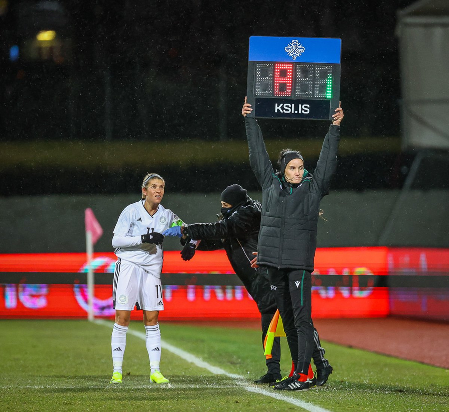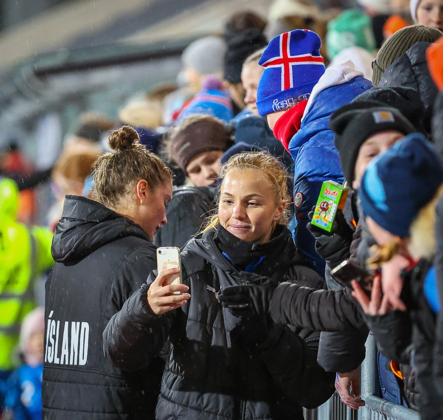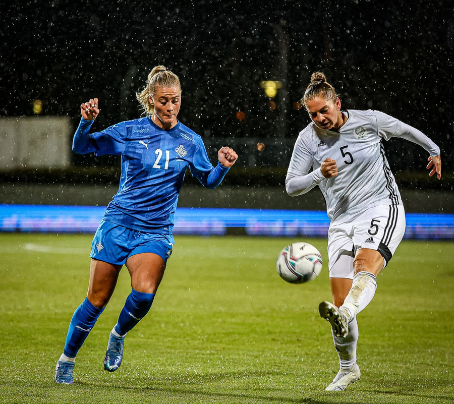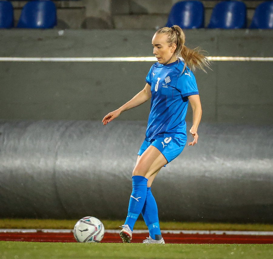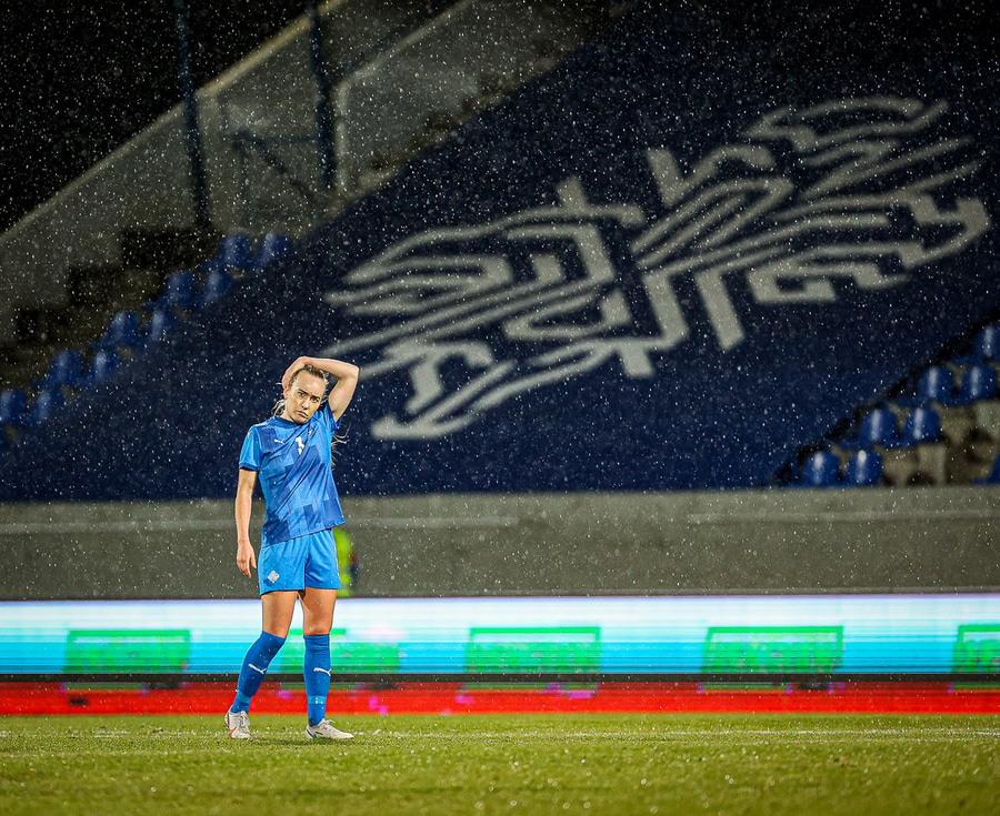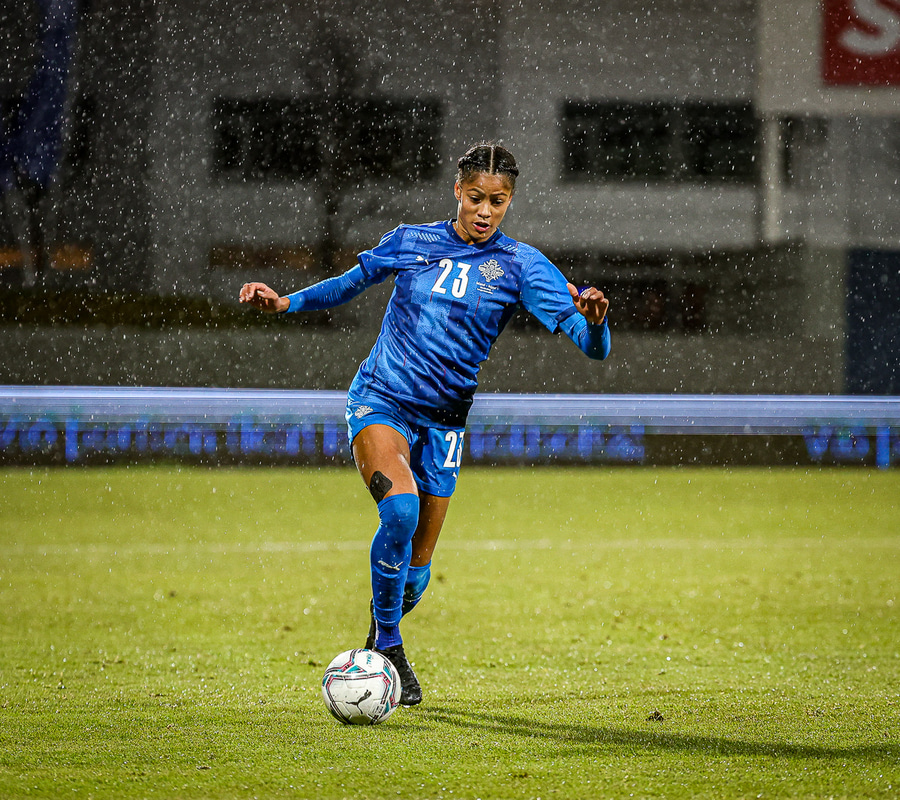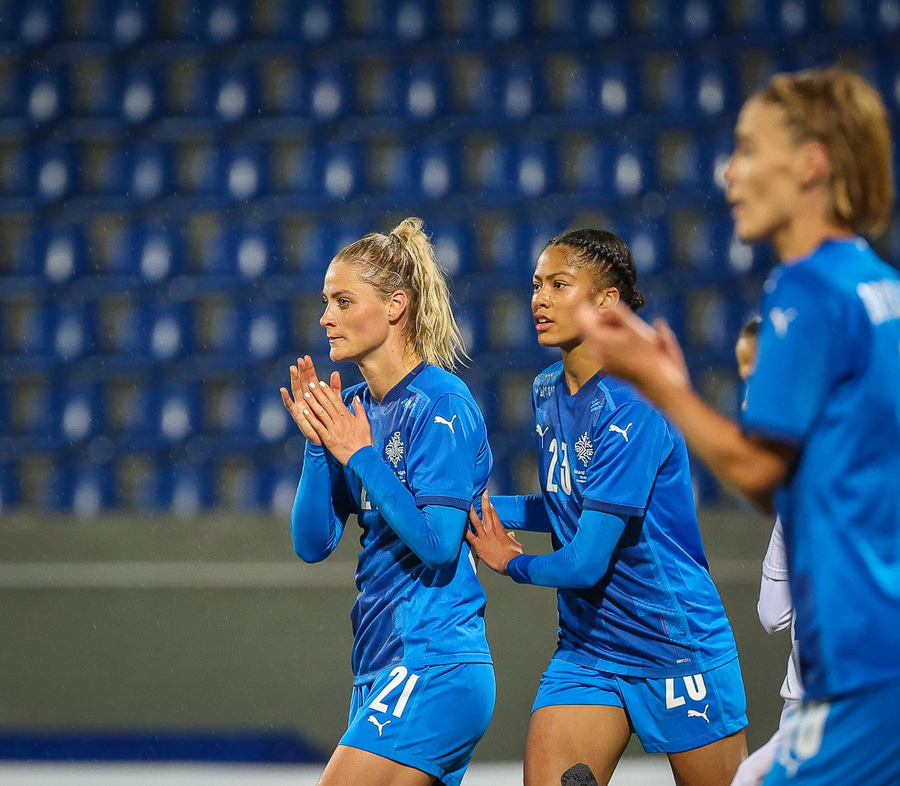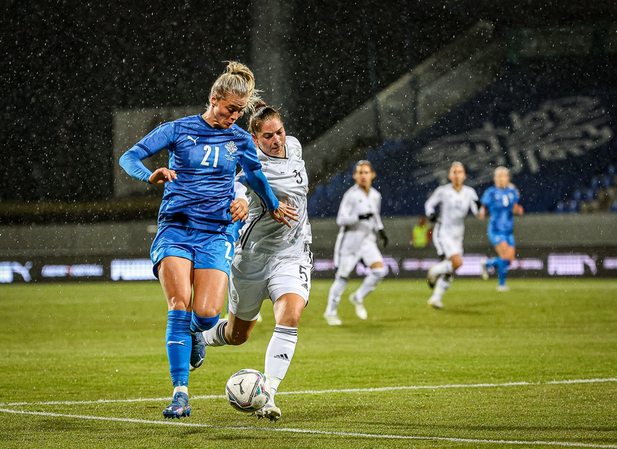 Hin 17 ára gamla Amanda Andradóttir spilar sinn annan A-landsleik. Hún er að byrja í fyrsta sinn fyrir Ísland.