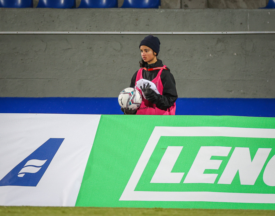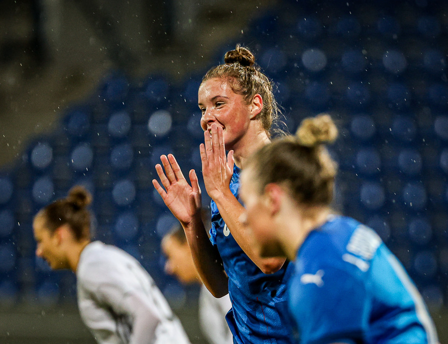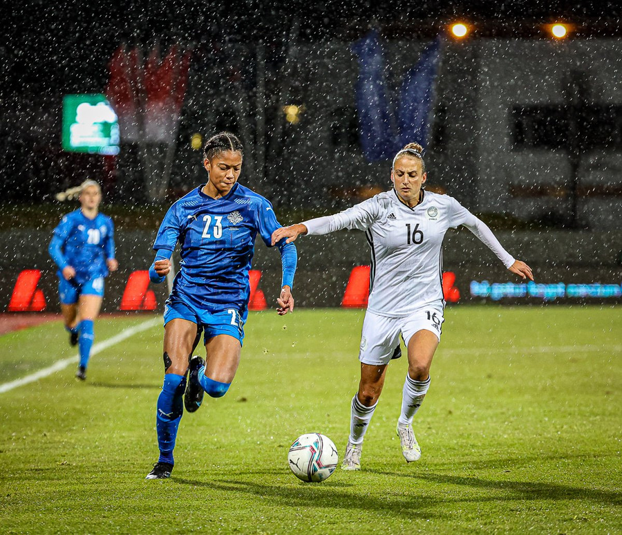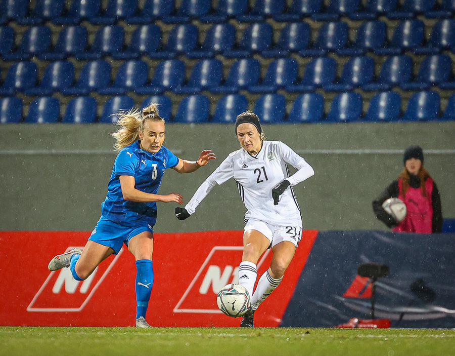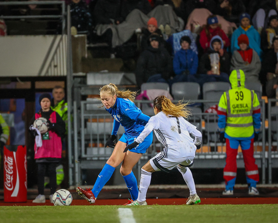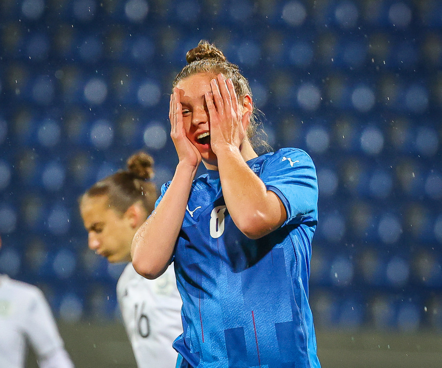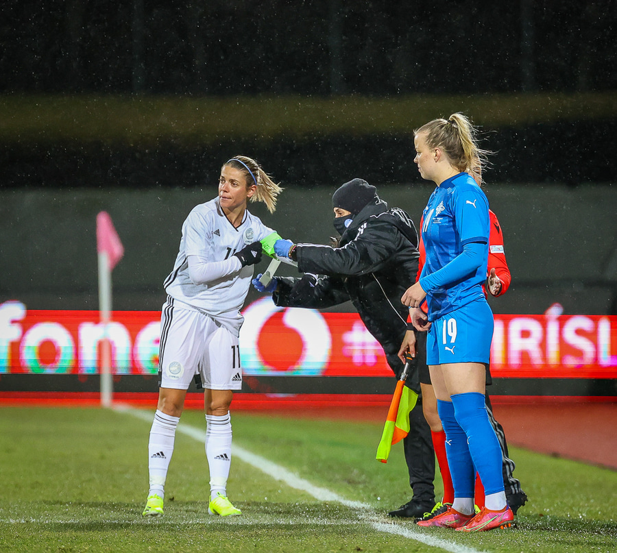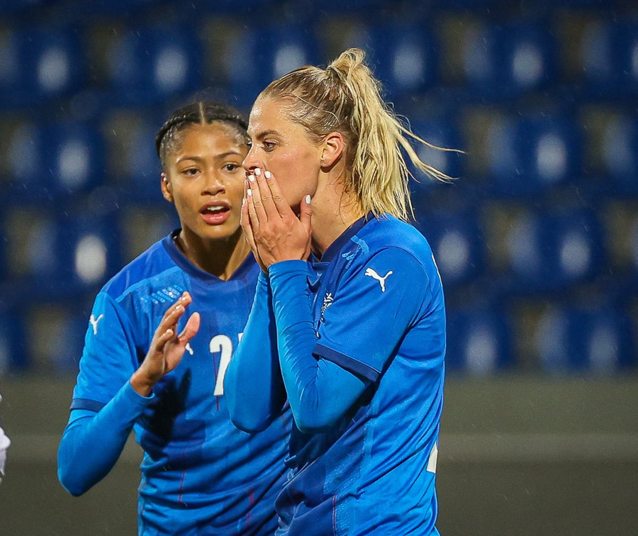 Hin 17 ára gamla Amanda Andradóttir spilar sinn annan A-landsleik. Hún er að byrja í fyrsta sinn fyrir Ísland.