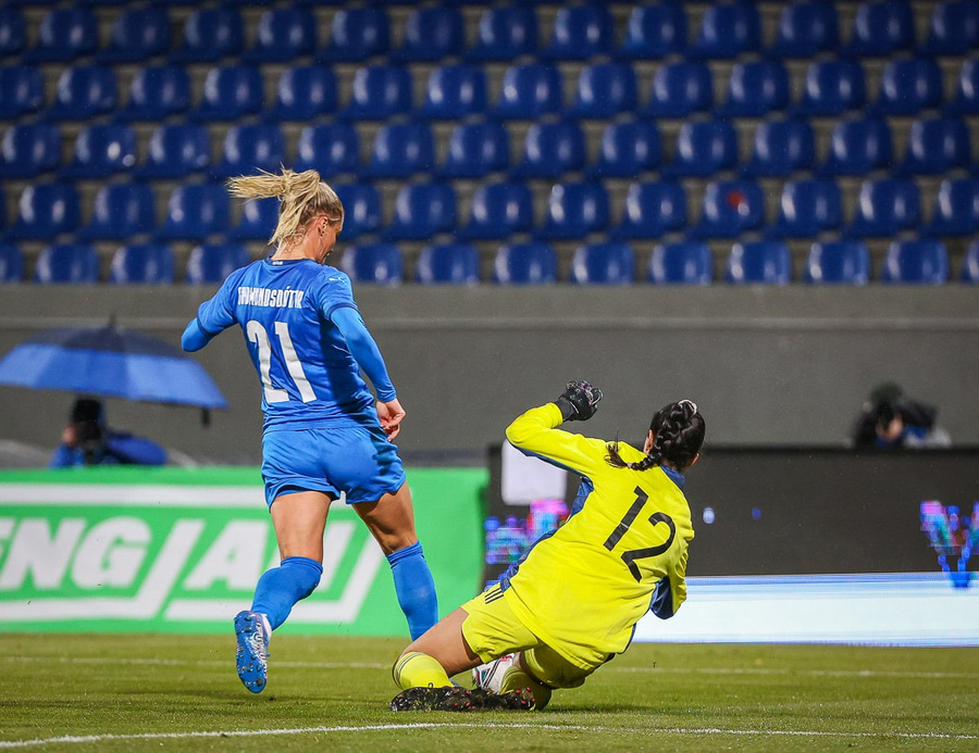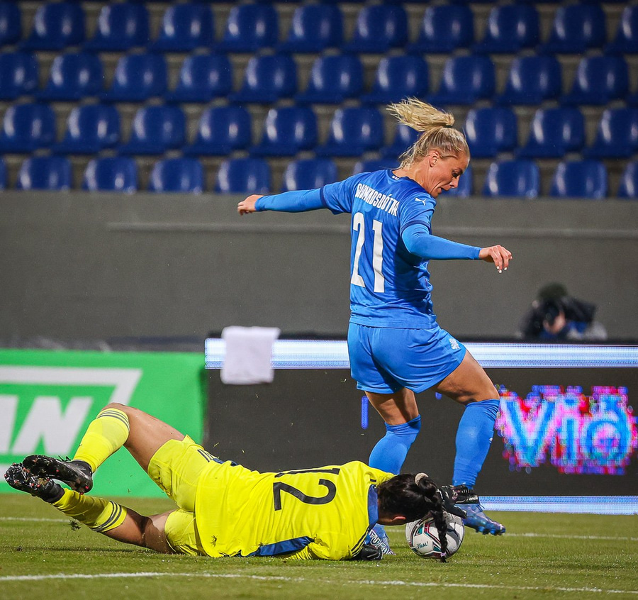 SVEINDÃS JANE JÓNSDÓTTIR afgreiðir þennan snyrtilega à markið! 2-0 fyrir Ãsland eftir tuttugu mÃnútna leik🇮🇸 pic.twitter.com/IEdS4zaBMG
