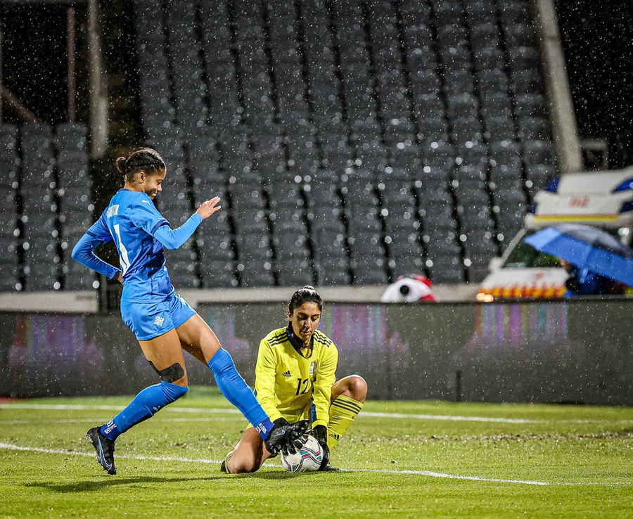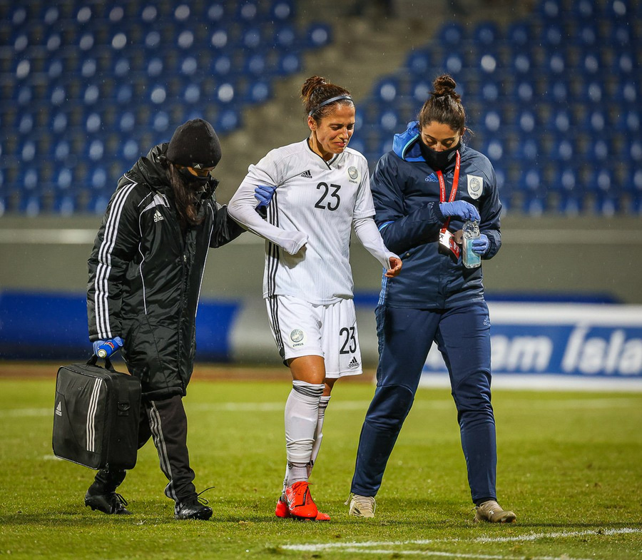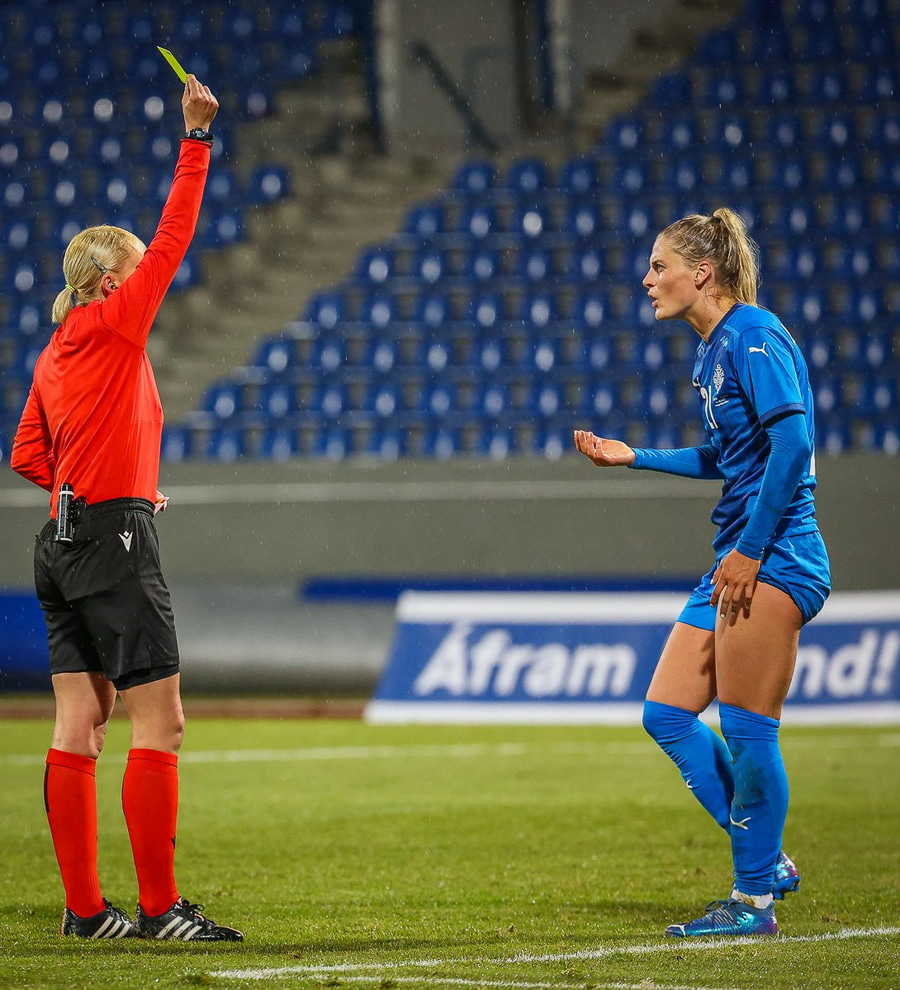 Dómarinn byrjuð að vorkenna Kýpur það mikið að hún tekur af okkur löglegt mark og skellir gulu á Svövu. Gult á Anastasiya dómara fyrir þessa à kvörðun. #fotboltinet