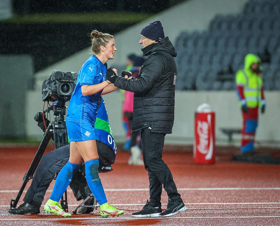 Þá kom Alexandra Jóhannsdóttir og Svava Rós Guðmundsdóttir einnig inn í liðið. Svava skoraði í síðasta leik og byrjar hún sem fremsti maður Íslands.