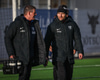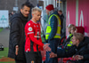 Þetta er að fara af stað, liðin að ganga inn á völlinn. Það er sólskin, smá gola og verið að vökva gervigrasið.