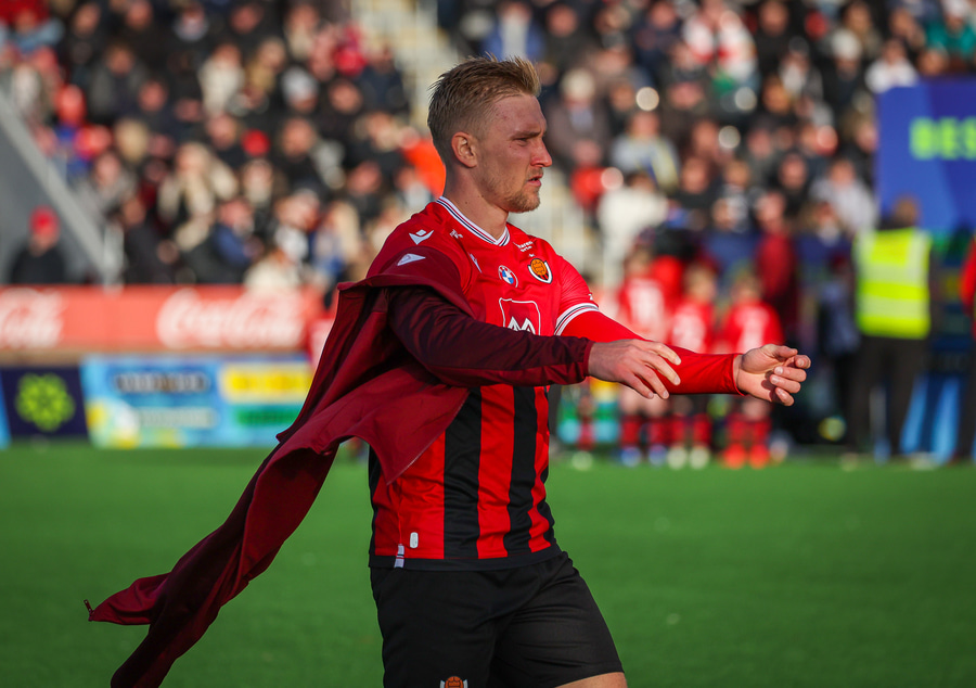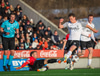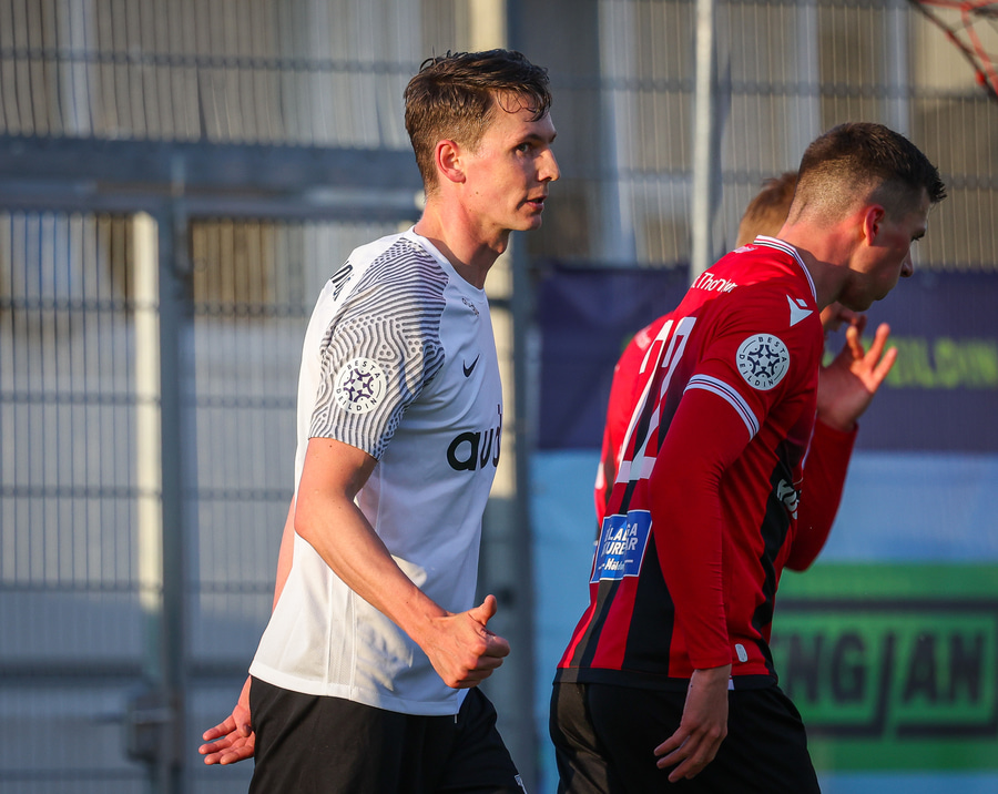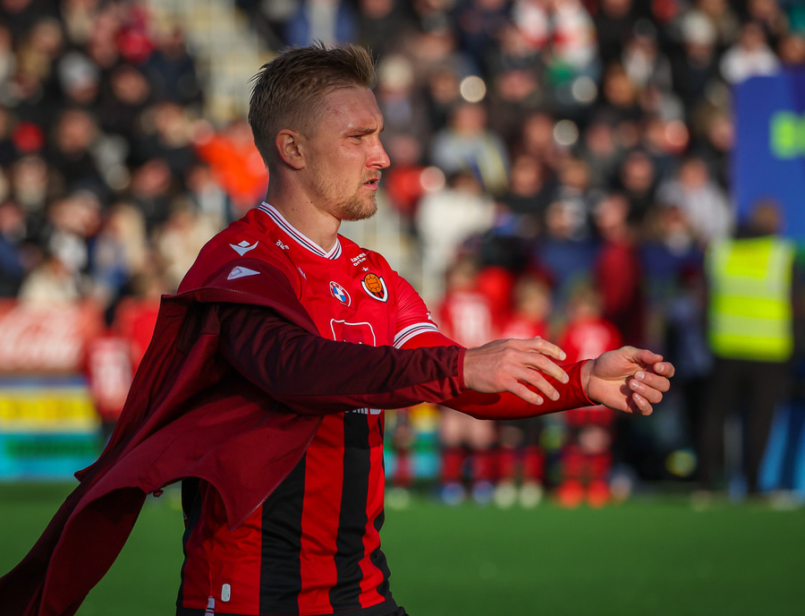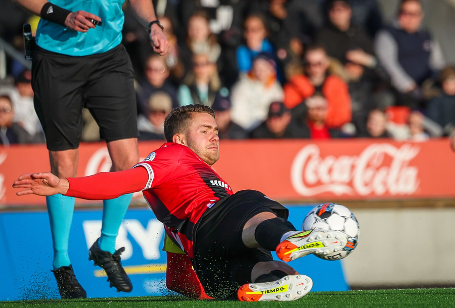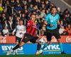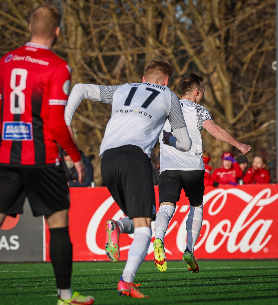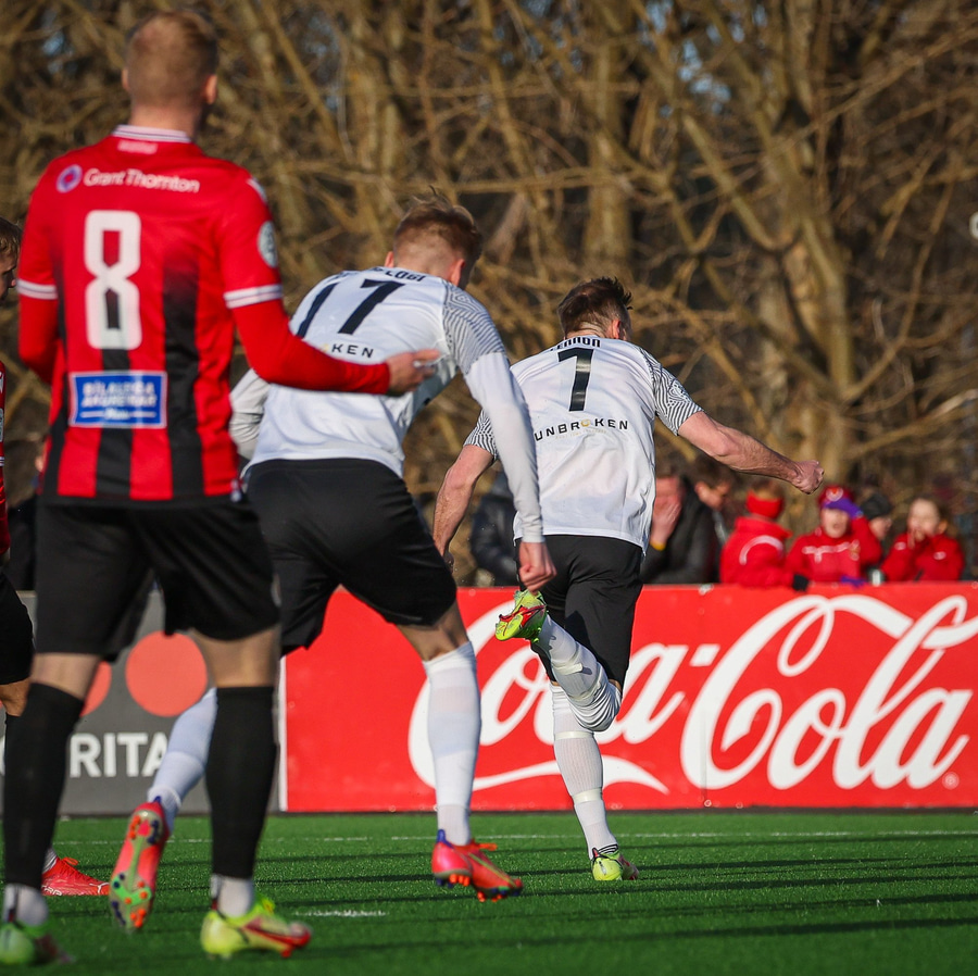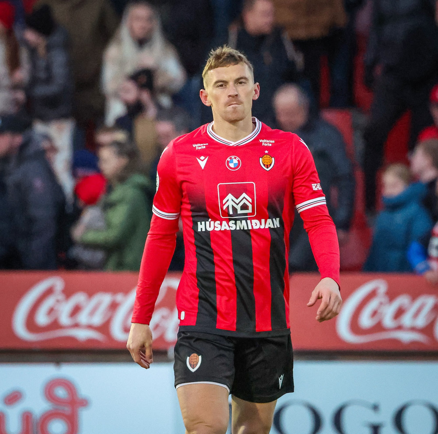 Ver skot frá Lennon í dauðafæri. Sending á fjær af vinstri kantinum, Oliver leggur boltann út á Lennon sem lætur vaða og skotið fer í Ingvar og afturfyrir.