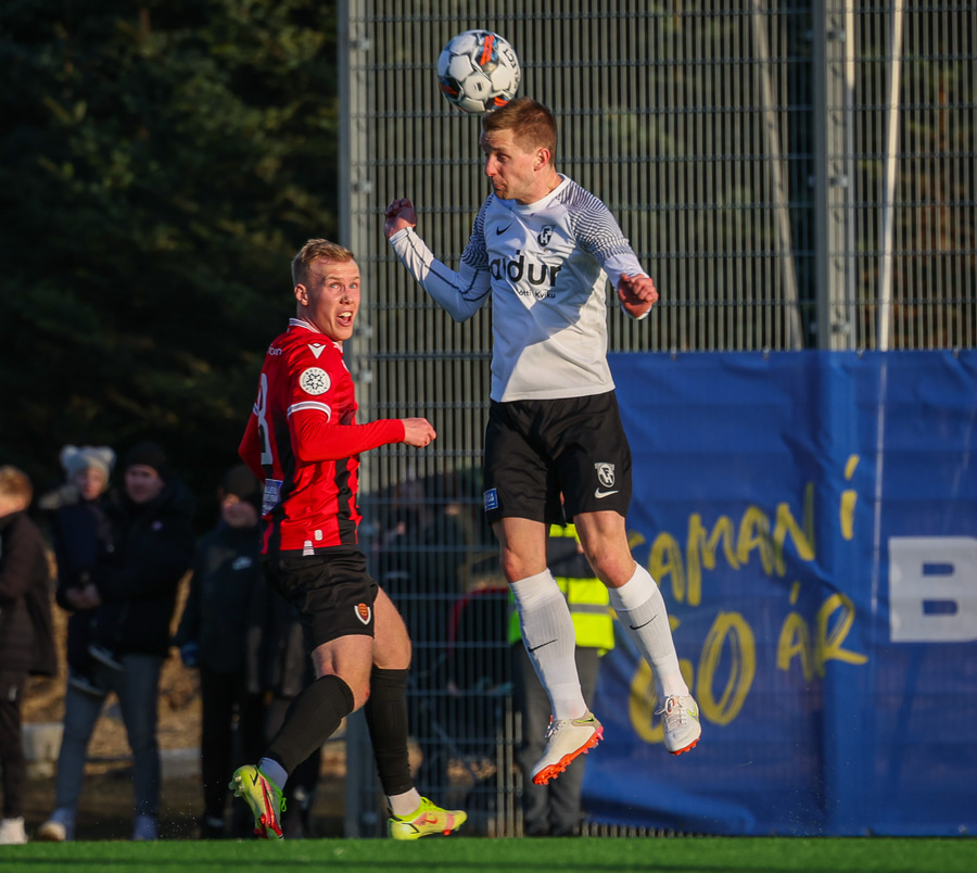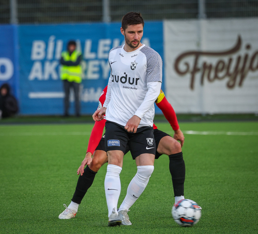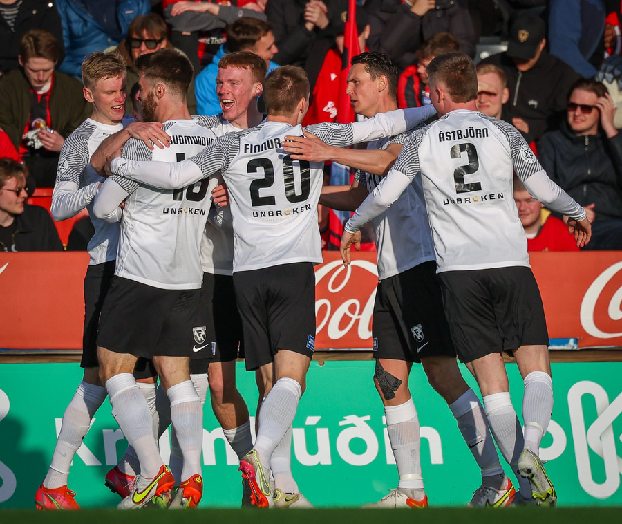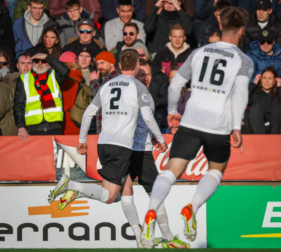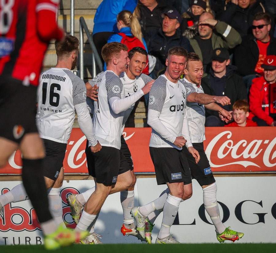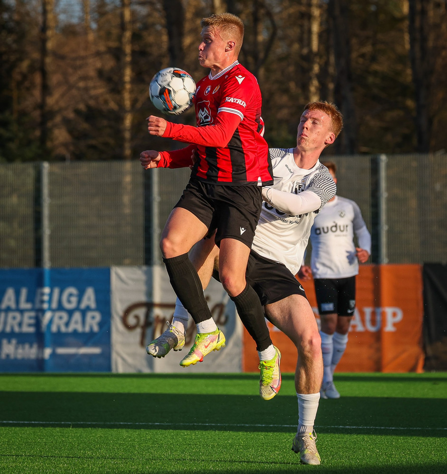 Kristall Máni með aukaspyrnu inn á teiginn eftir að Ari Sigurpáls var felldur af Óla Guðmunds. Þetta endar á skoti frá Viktori Örlygi en framhjá/yfir fór það.