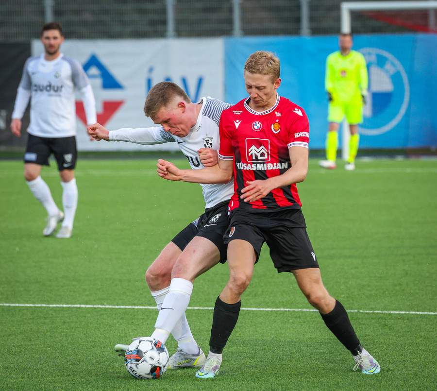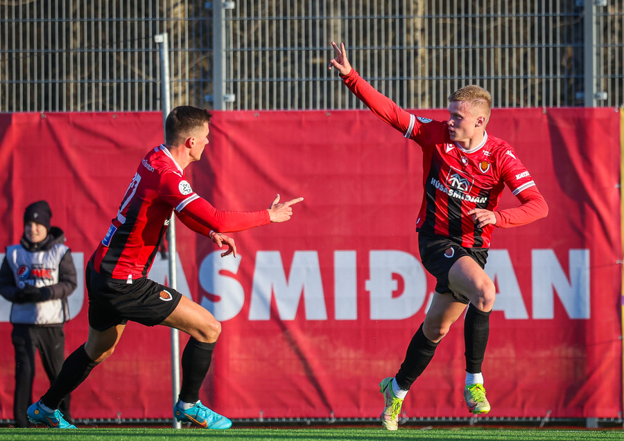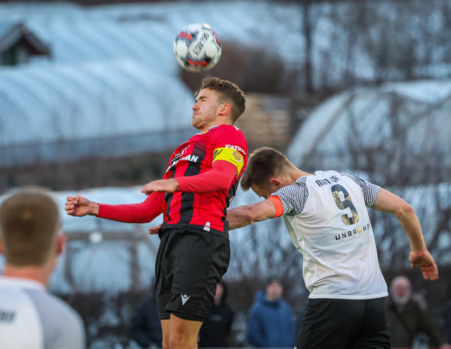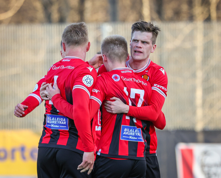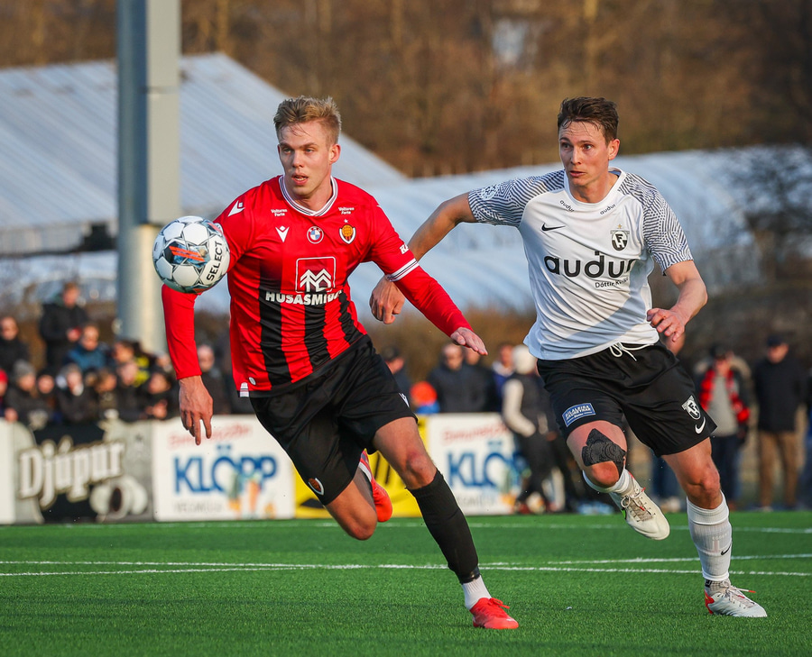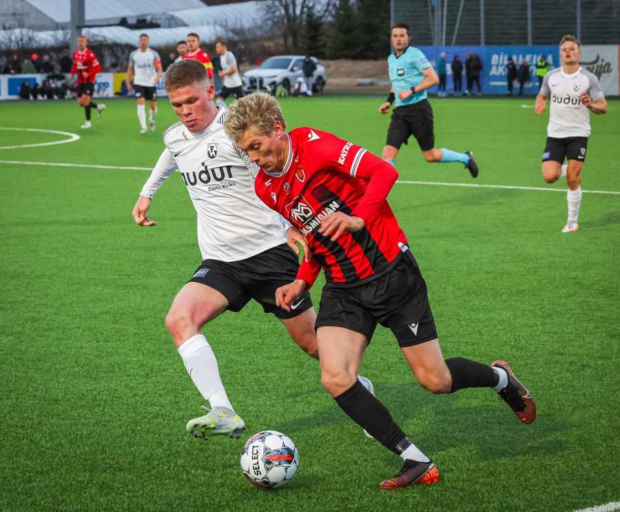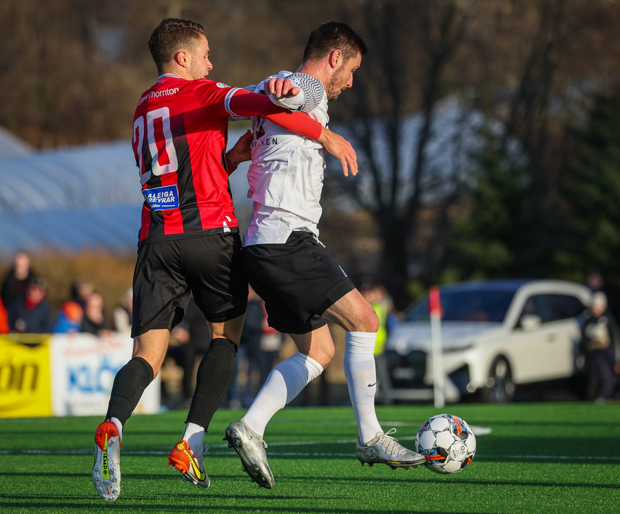 Kristall Máni með aukaspyrnu inn á teiginn eftir að Ari Sigurpáls var felldur af Óla Guðmunds. Þetta endar á skoti frá Viktori Örlygi en framhjá/yfir fór það.