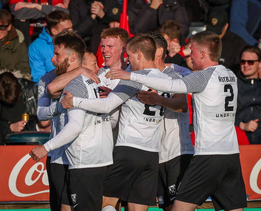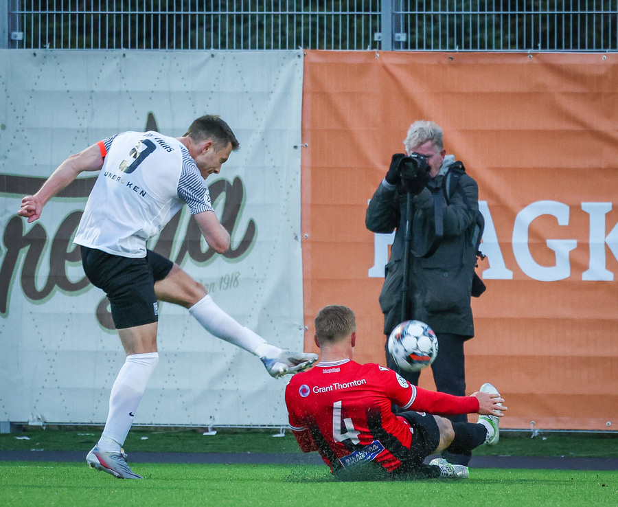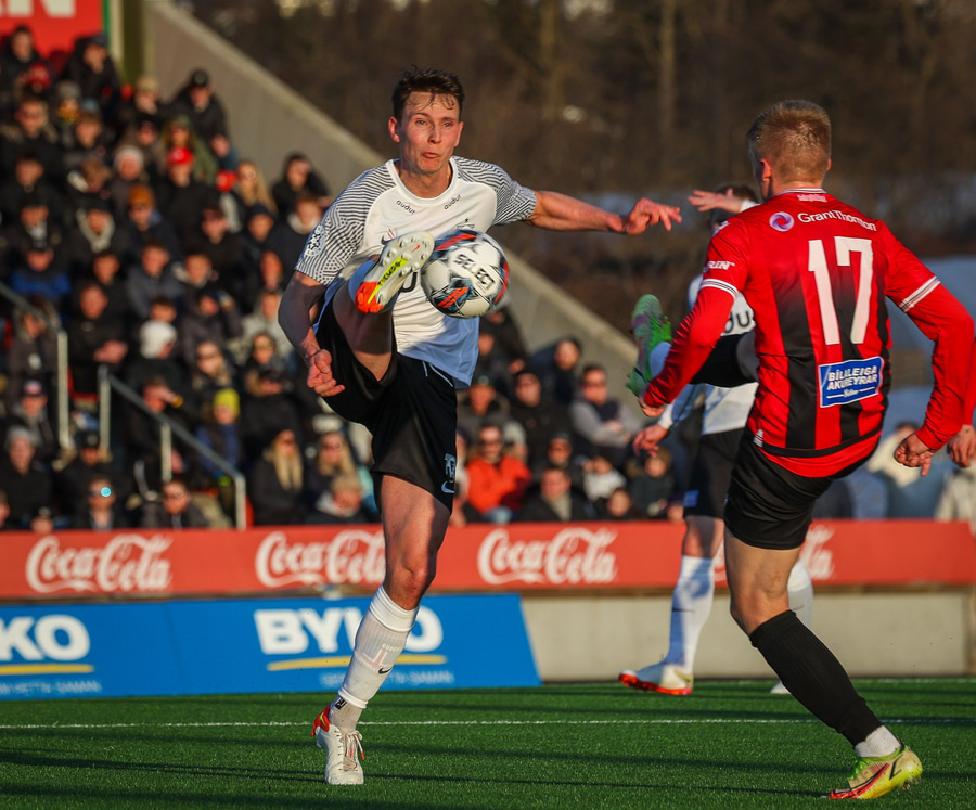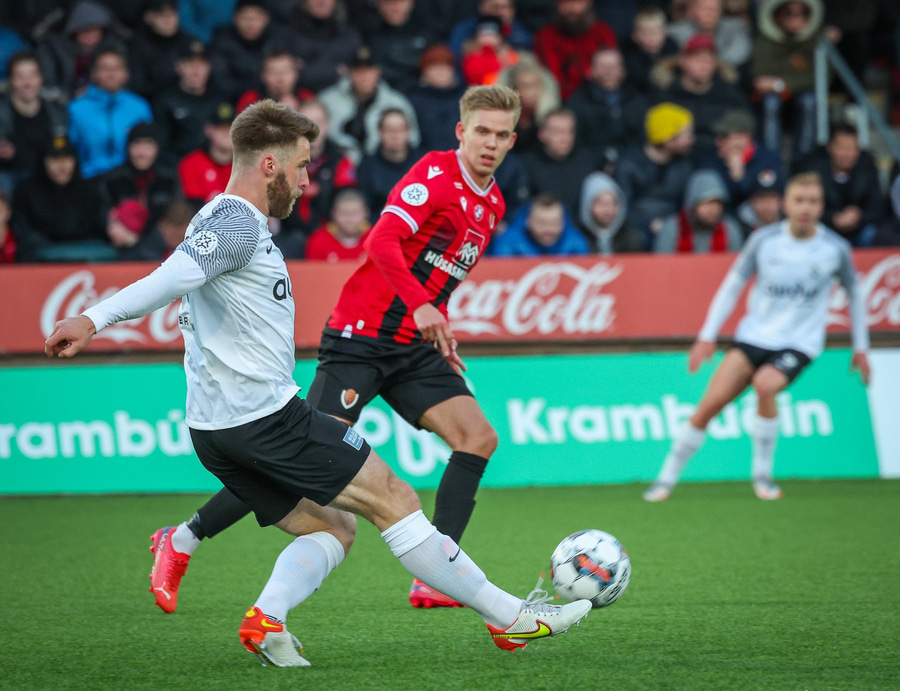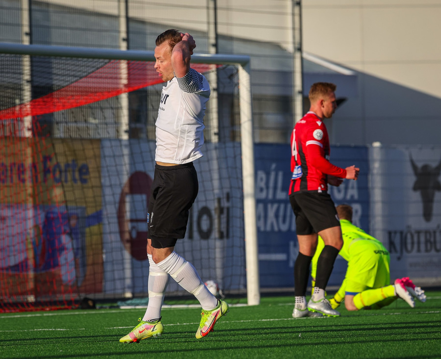 Matthías með tilraun eftir hraða sókn gestanna. Ekroth las Matthías þarna og var búinn að renna sér áður en Matthías reif í gikkinn.