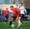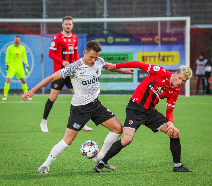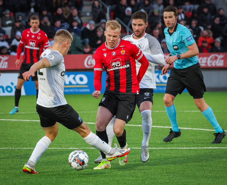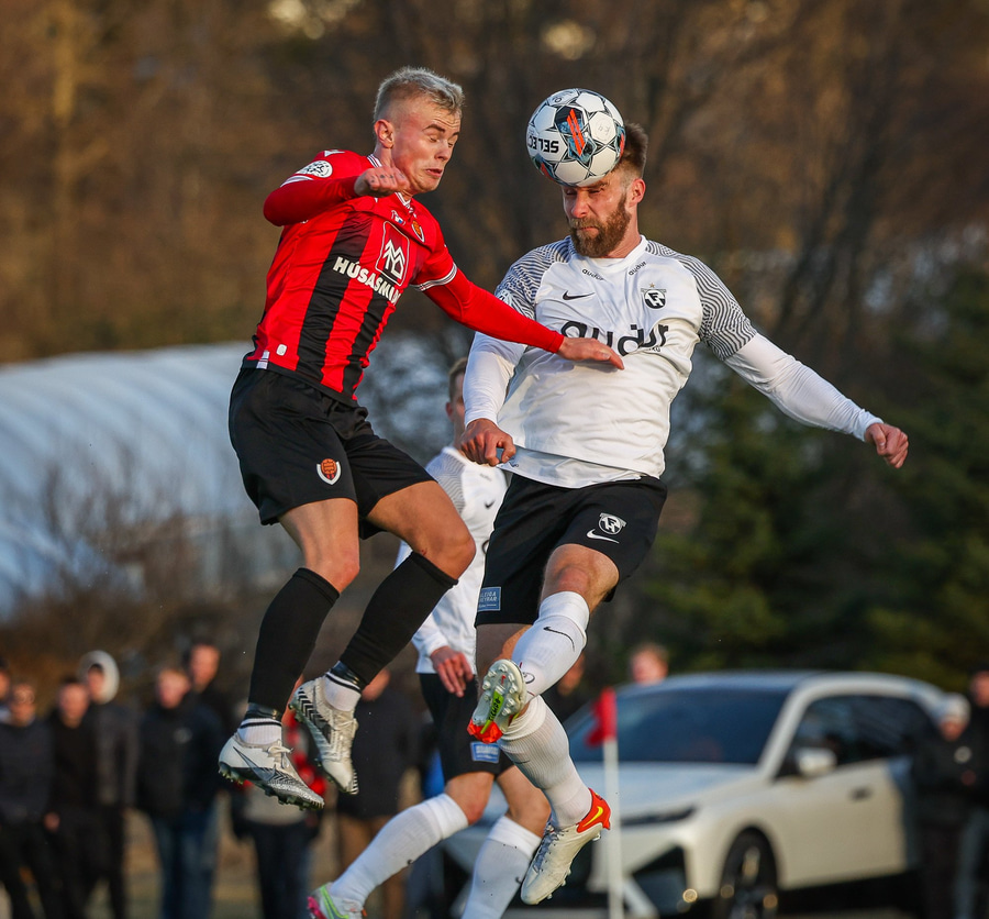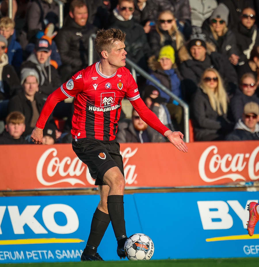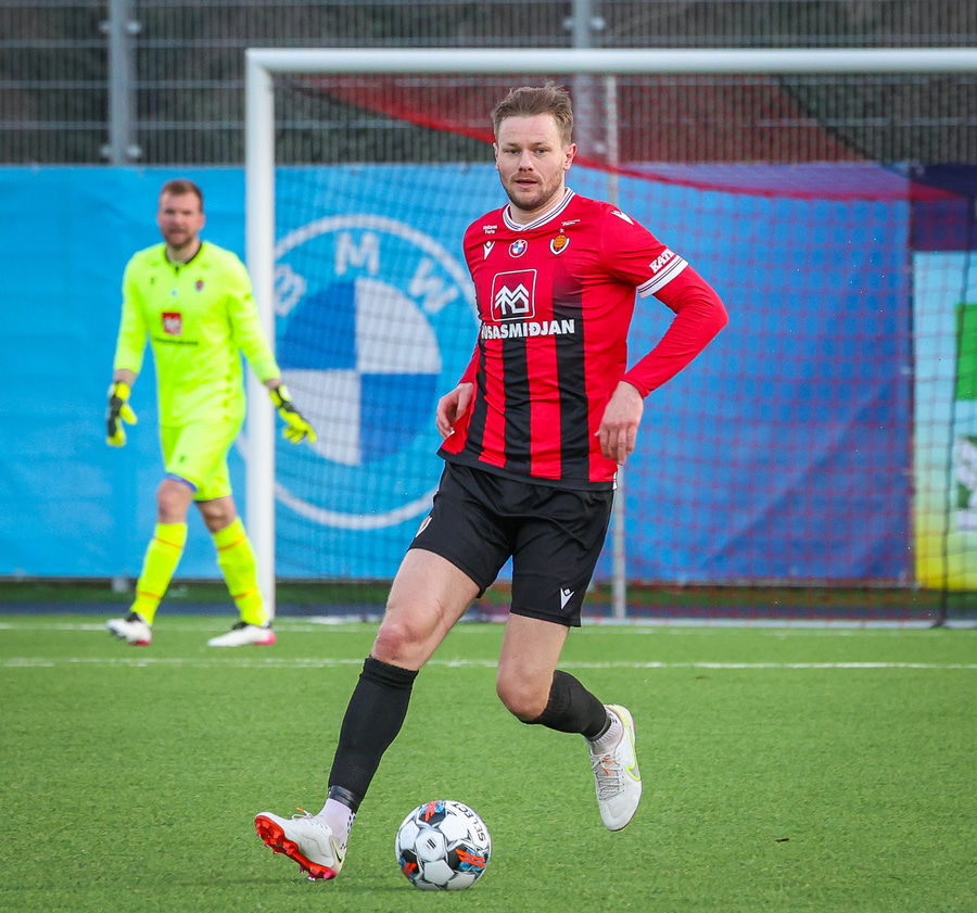 Matthías með tilraun eftir hraða sókn gestanna. Ekroth las Matthías þarna og var búinn að renna sér áður en Matthías reif í gikkinn.