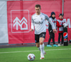 Innkast úti vinstra megin, Ólafur kastar á Matta, sem sendir á Lennon sem sendir á Matta sem sendir aftur á Lennon sem klárar.