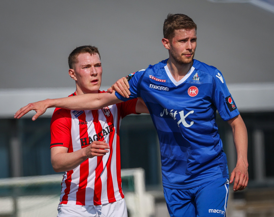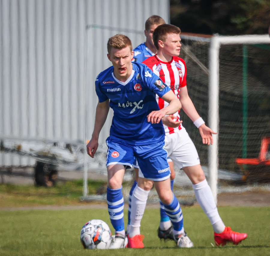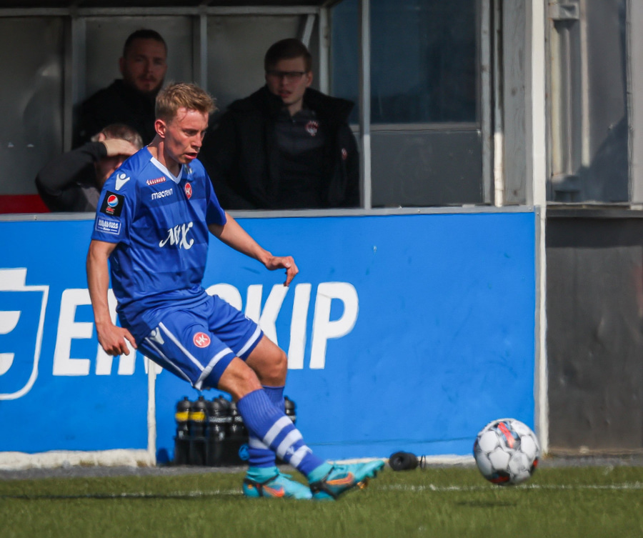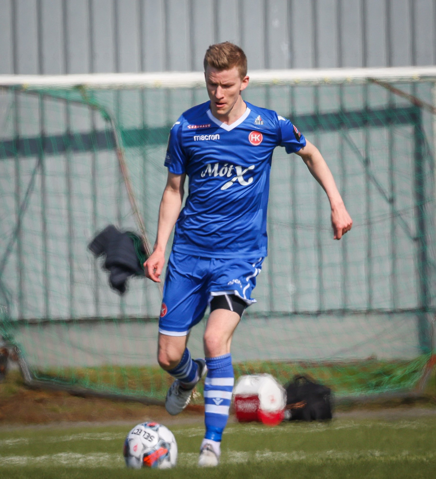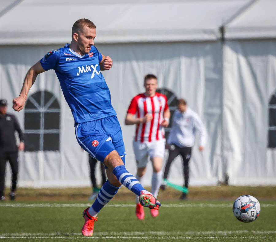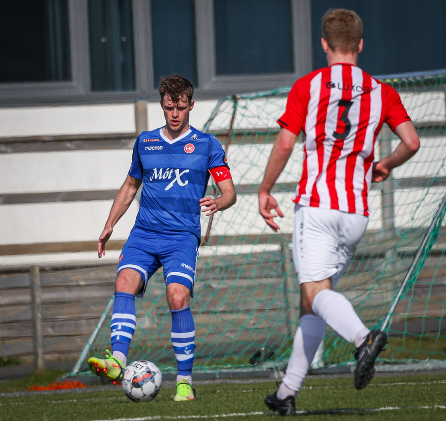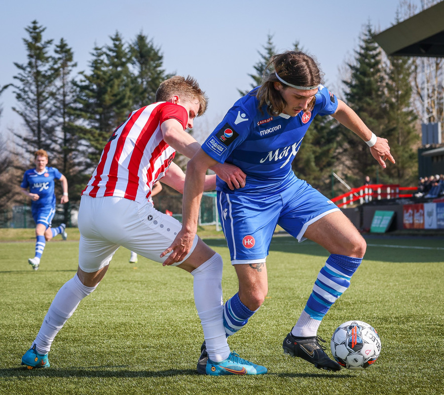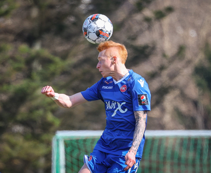 HK með öll völd á vellinum síðustu 10 mínúturnar. Góð sókn gestanna sem endar með hættulegum skalla Örvars Eggerts. Vel varið hjá Frans í markinu!