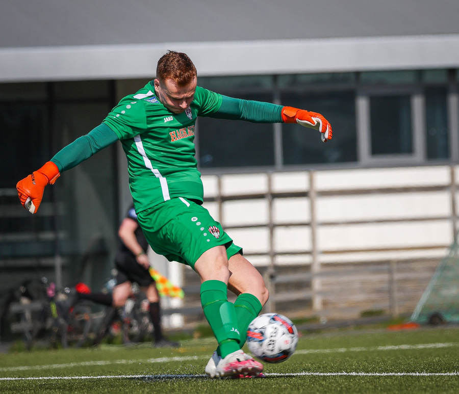 Frábær sókn HK endar á skoti rétt utan markteygs hjá Valgeiri sem Frans ver vel!
